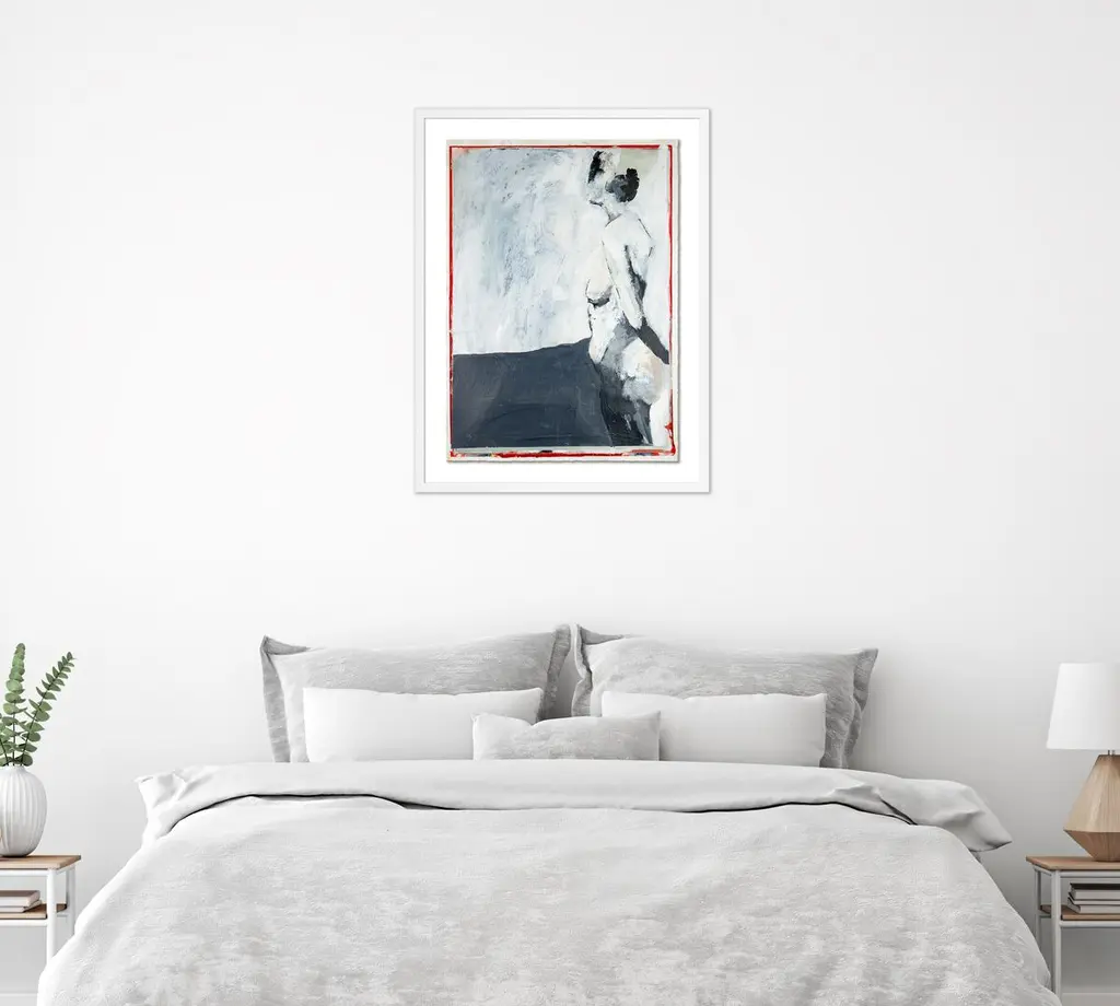 A faithful giclée reproduction of a painting by Jane Feil, this study of shadow, light, and the human form is floated above a white mat within a wood frame. It arrives ready to hang.Born in Chicago, Jane Feil received a BFA from the California College of the Arts in 1976. In the decades that have followed, her paintings have focused on the endlessly fascinating human figure. Feil has raised six children and lived in Santa Monica for nearly 30 years.