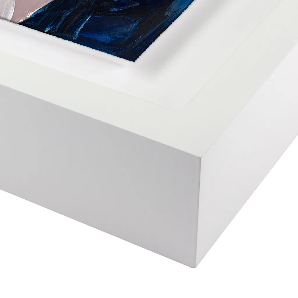 This evocative portrait is a faithful giclée reproduction of a painting by Jane Feil. Floated above a white mat within a wood frame, it arrives ready to hang.Born in Chicago, Jane Feil received a BFA from the California College of the Arts in 1976. In the decades that have followed, her paintings have focused on the endlessly fascinating human figure. Feil has raised six children and lived in Santa Monica for nearly 30 years.