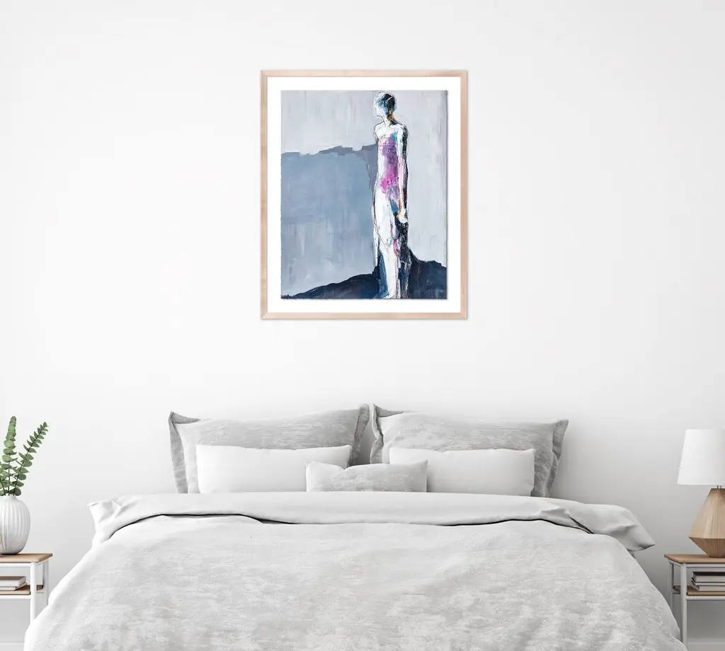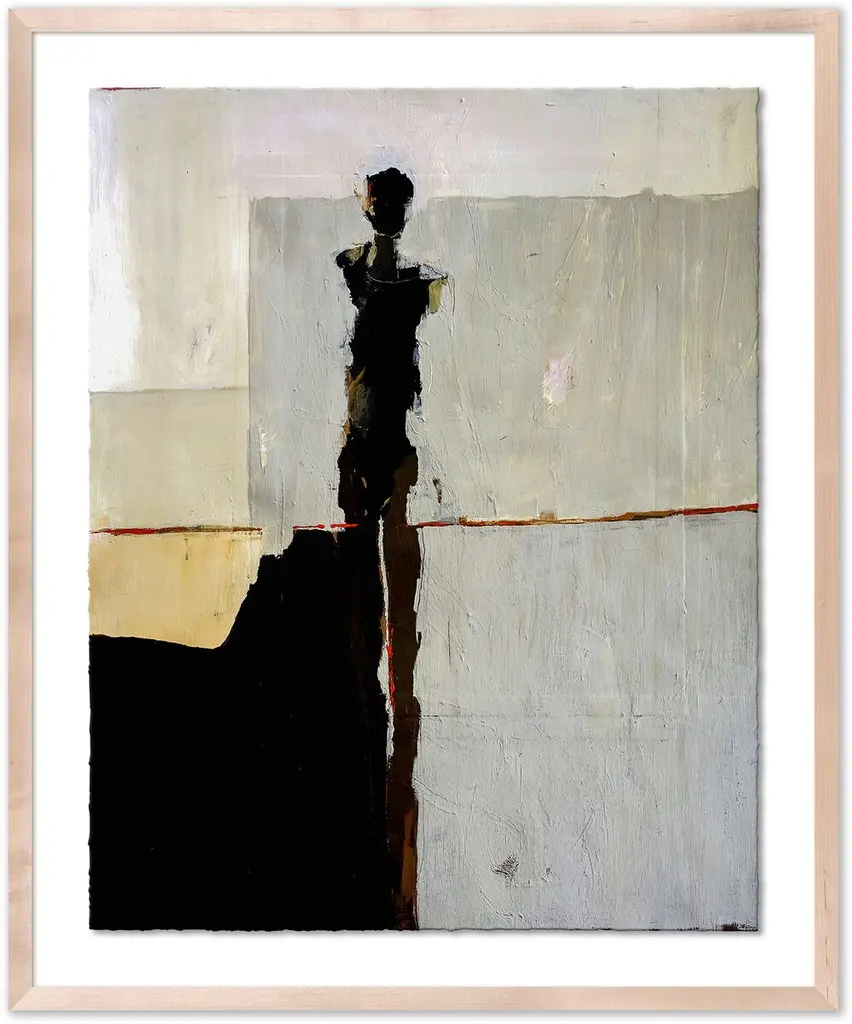 This impressionistic work is a faithful giclée reproduction of a painting by Jane Feil. Floated above a white mat within a wood frame, it arrives ready to hang.Born in Chicago, Jane Feil received a BFA from the California College of the Arts in 1976. In the decades that have followed, her paintings have focused on the endlessly fascinating human figure. Feil has raised six children and lived in Santa Monica for nearly 30 years.
