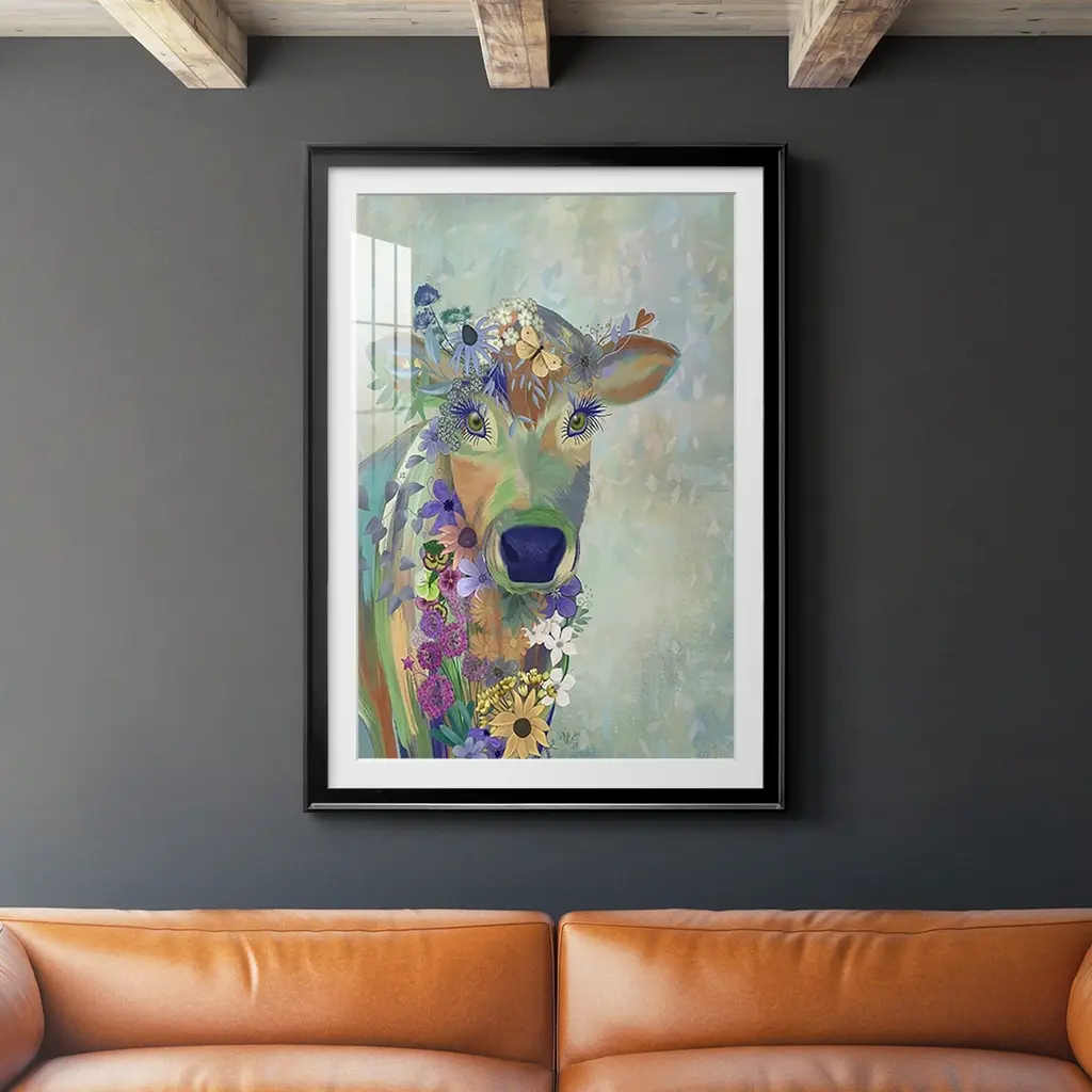 Bossie and Daisy by Janet Nelson is a high quality piece of framed artwork. The finished size of this piece is 23" X 23". It has a Black Slant frame, is single matted and finished with high quality Acrylic Plexiglass.