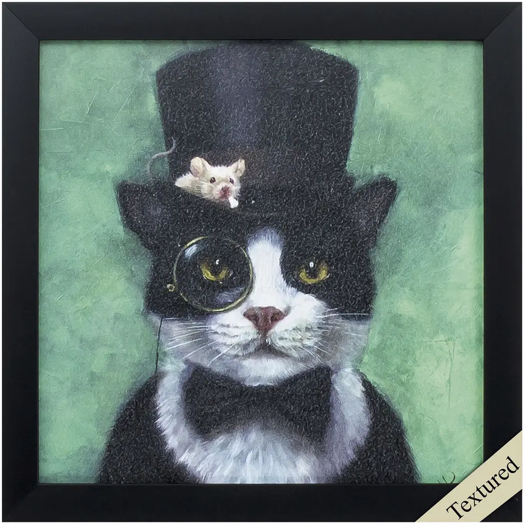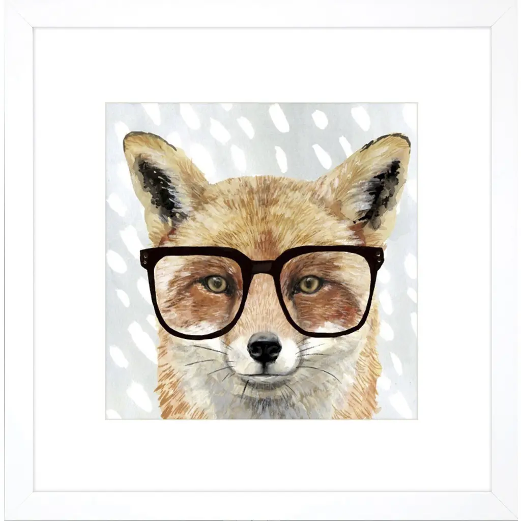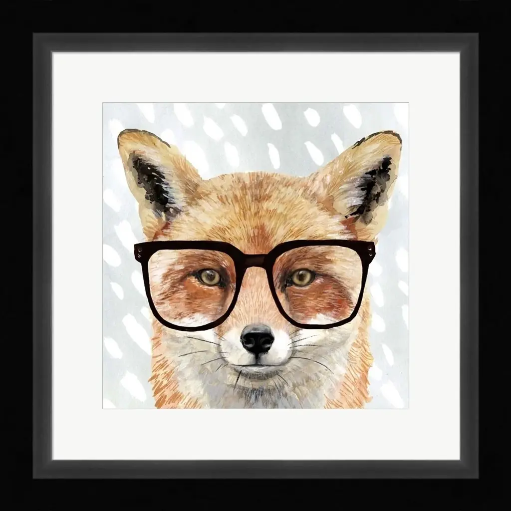 Mr Fox Thinks Out of the Box by Janet Nelson is a high quality piece of framed artwork. The finished size of this piece is 21.25" X 21.25". It has a Black Petite Decorative frame, is single matted and finished with high quality Acrylic Plexiglass.