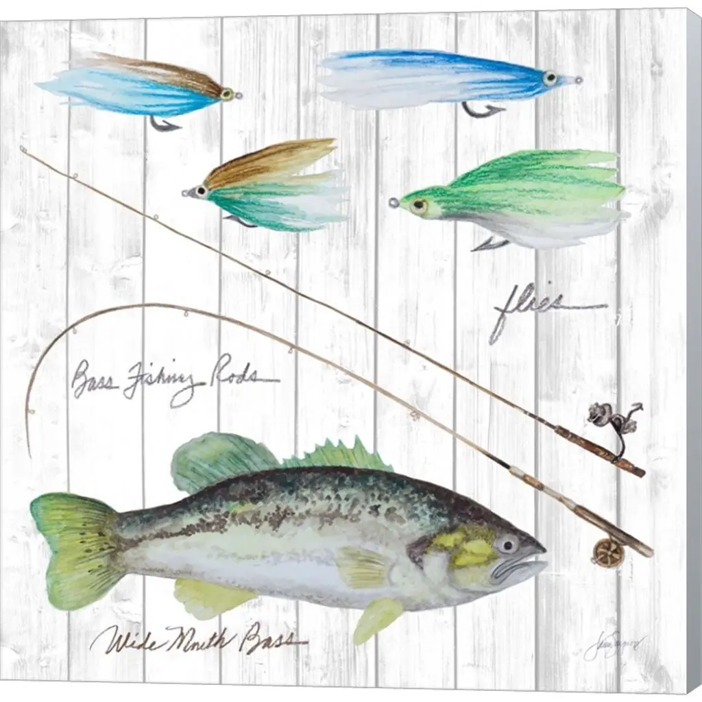 Fish and Tackle I by Janice Gaynor is a high quality piece of canvas artwork. The finished size of this piece is 12" X 12", and it has a depth 1.5" with winter gray painted sides. There is a UV protective coating over the entire image, and it is ready to hang on your wall with no hardware required. 100% Satisfaction Guaranteed.