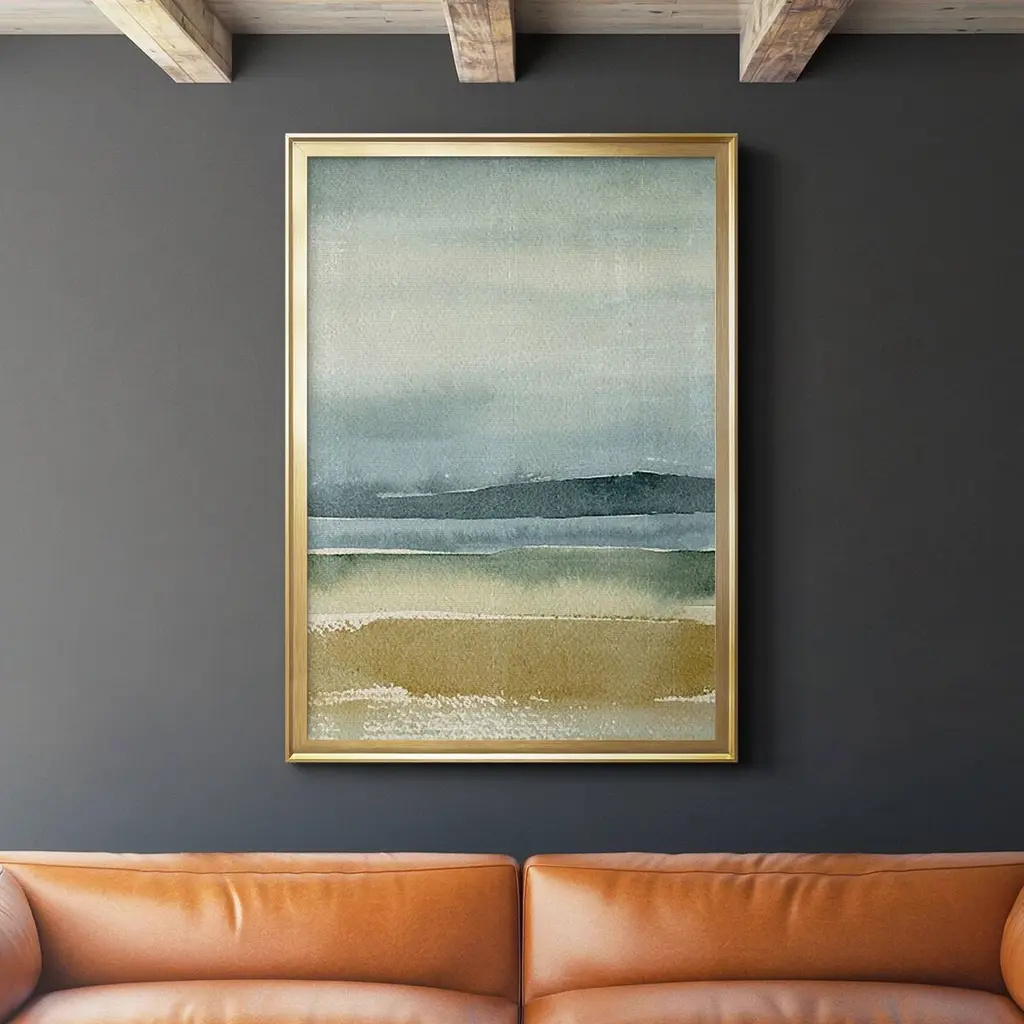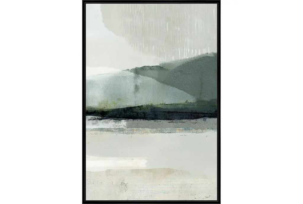 Your ready to hang artwork is printed on canvas then stretched and mounted to a 2-inch thick - hand stained black wood frame. Arrives at your door complete with an easy to use self-leveling hangking kit.
