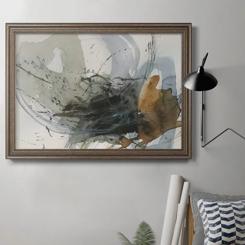57"W X 73"H X 2"D Stunning teals and golds flow through this image by artist Jason Lott. The piece features a high-gloss vitreous finish and is surrounded by a silver molding.
