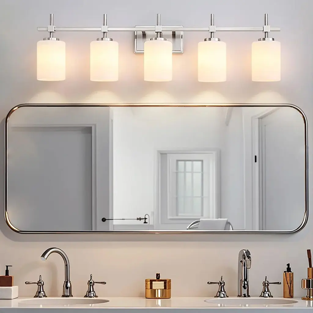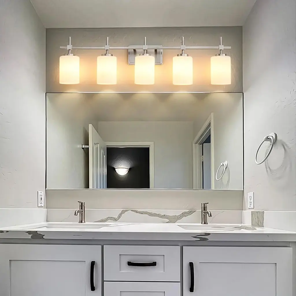 Jasper Modern Frosted Glass 5-Light Bathroom Linear Vanity Light - Brush Nickel