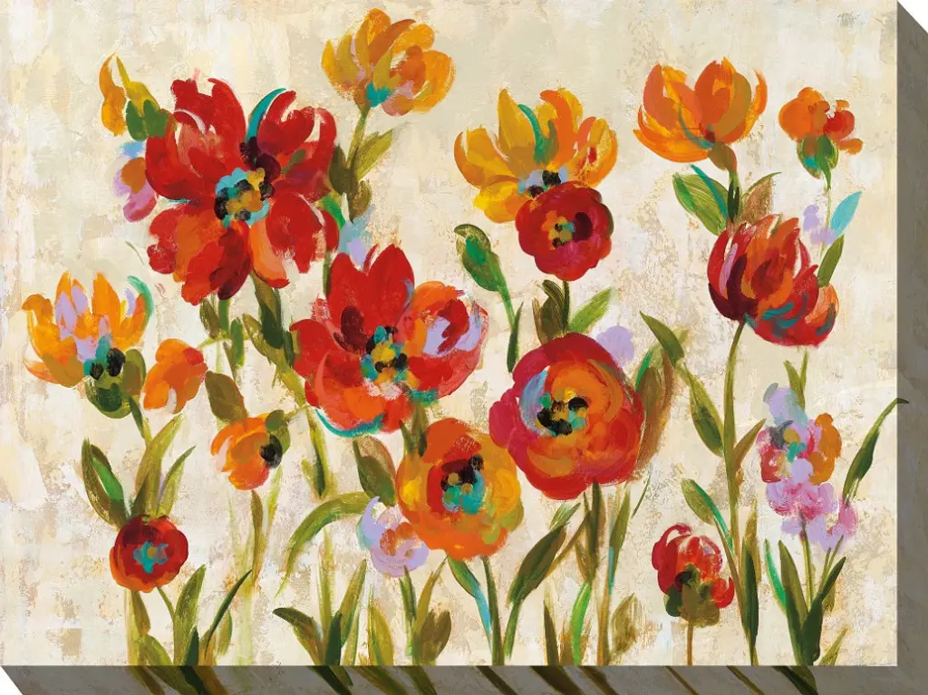 All weather outdoor canvas art. Transport yourself into nature with this stunning and vivid outdoor art piece. This unique and inspired artwork features bright, beautiful colors and is printed on canvas using giclee printing technology. Each piece is waterproof, UV protected, and gallery wrapped on vinyl stretcher bars, making it safe for the outdoors and keeping it protected from the elements. Hang this colorful, nature-inspired piece on your patio, porch or even a fence and watch as your outdoor living space is transformed.