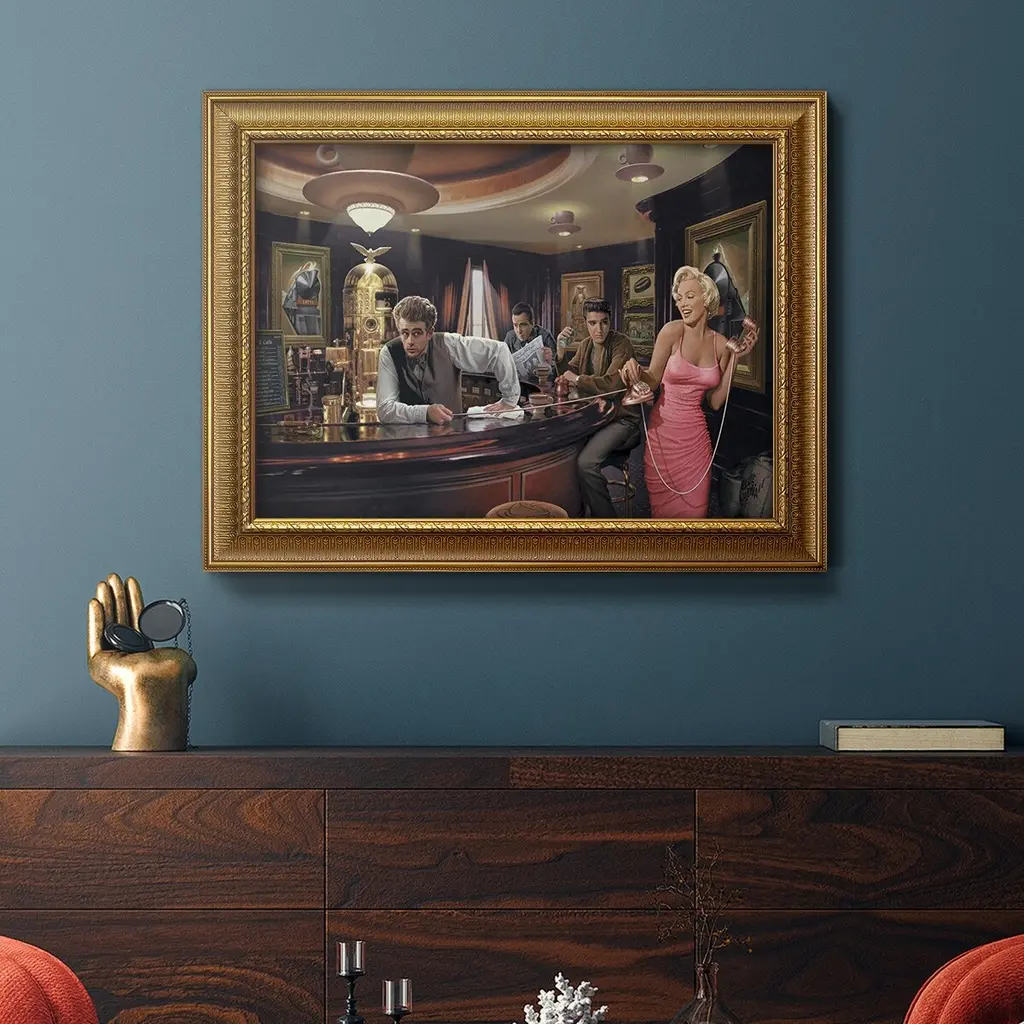 Java Dreams Premium Framed Canvas- Ready to Hang A Premium Framed Canvas created to last. Framed in distressed wood and available in an array of sizes and colors Featuring a beveled a solid wood stretcher bar, each piece comes ready to hand 3 SIZES AVAILABLE 16''X20'' - Overall Size 18'X27'' - Overall Size 24''x36'' - Overall Size Each piece is made to order. Each piece comes with hanging hardware. Made in the USA Ready to Hang Giclee Paper Print Acrylic Glass Beveled Matt Board