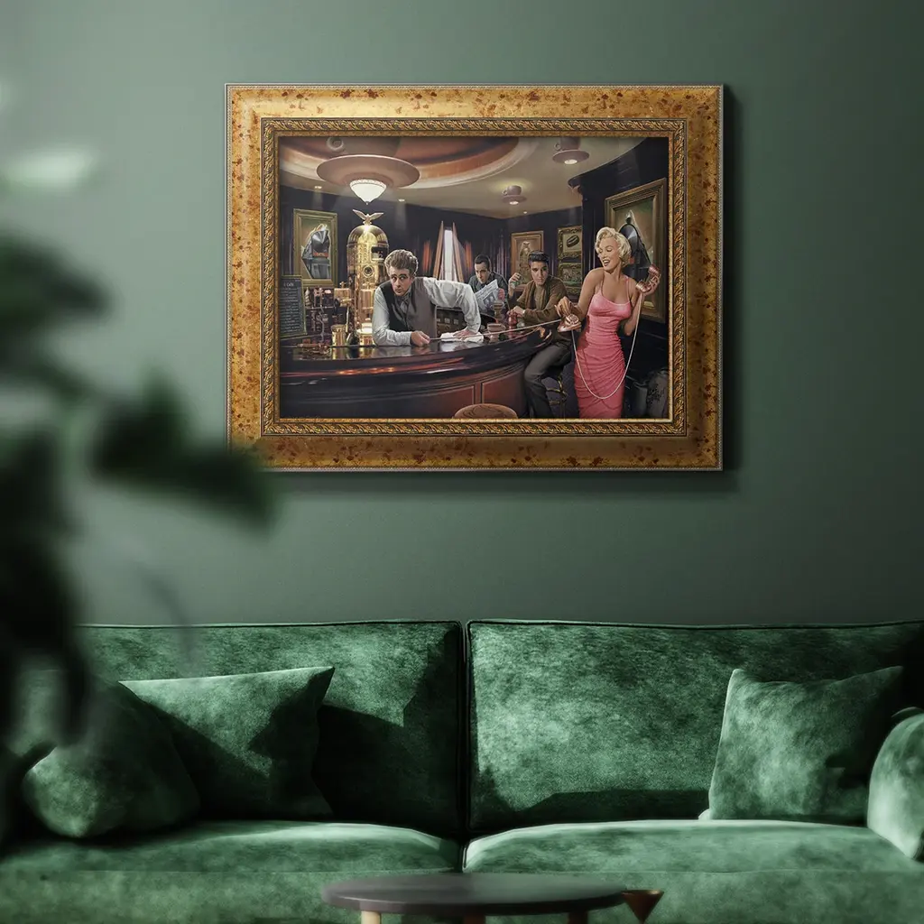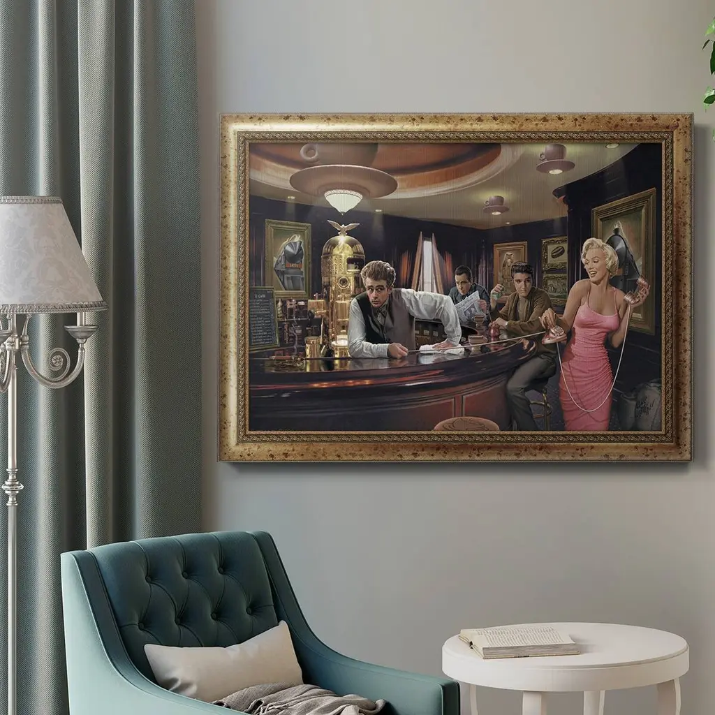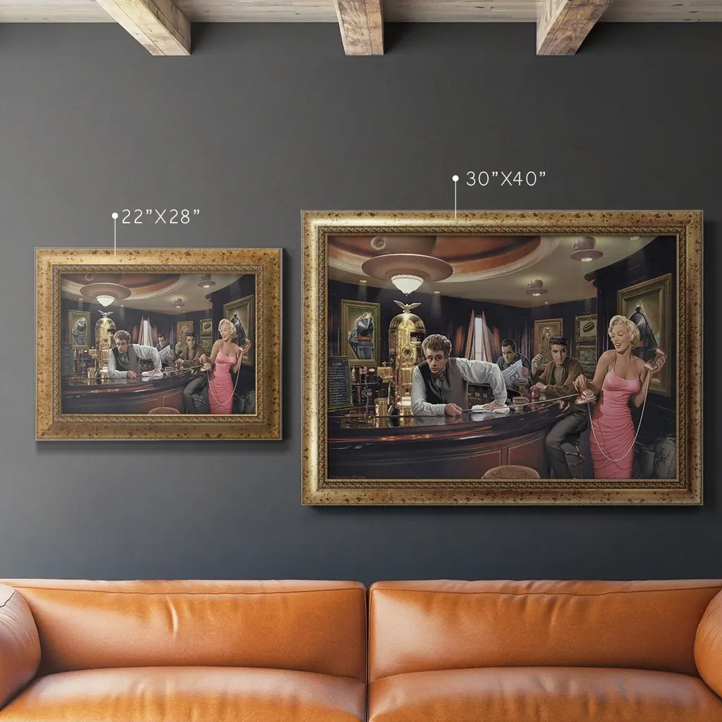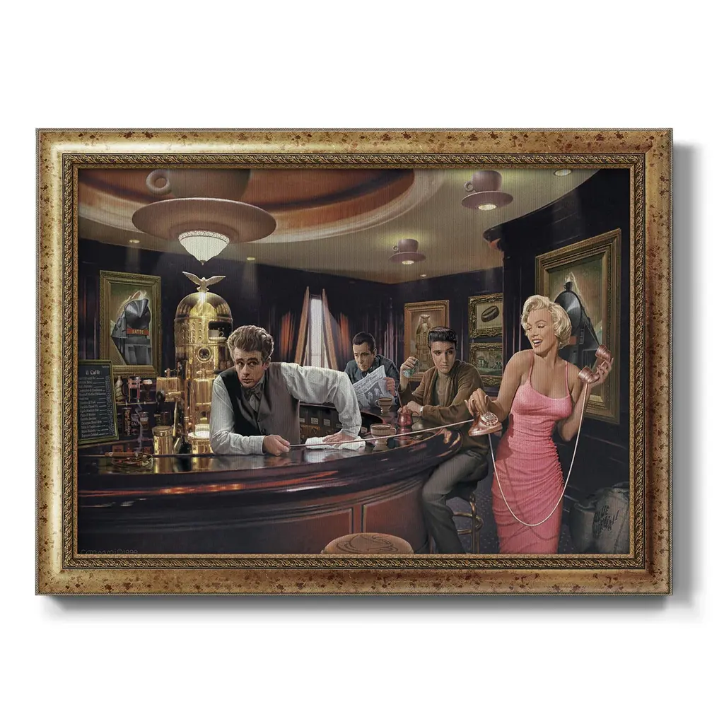 Java Dreams Premium Framed Canvas- Ready to Hang A Premium Framed Canvas created to last. Framed in distressed wood and available in an array of sizes and colors Featuring a beveled a solid wood stretcher bar, each piece comes ready to hand 3 SIZES AVAILABLE 16''X20'' - Overall Size 18'X27'' - Overall Size 24''x36'' - Overall Size Each piece is made to order. Each piece comes with hanging hardware. Made in the USA Ready to Hang Giclee Paper Print Acrylic Glass Beveled Matt Board