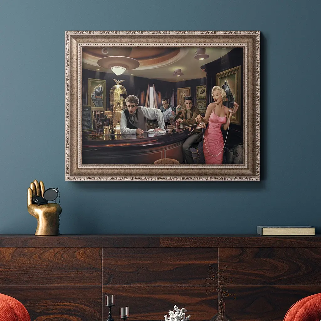 Java Dreams Premium Framed Canvas- Ready to Hang A Premium Framed Canvas created to last. Framed in distressed wood and available in an array of sizes and colors Featuring a beveled a solid wood stretcher bar, each piece comes ready to hand 3 SIZES AVAILABLE 16''X20'' - Overall Size 18'X27'' - Overall Size 24''x36'' - Overall Size Each piece is made to order. Each piece comes with hanging hardware. Made in the USA Ready to Hang Giclee Paper Print Acrylic Glass Beveled Matt Board