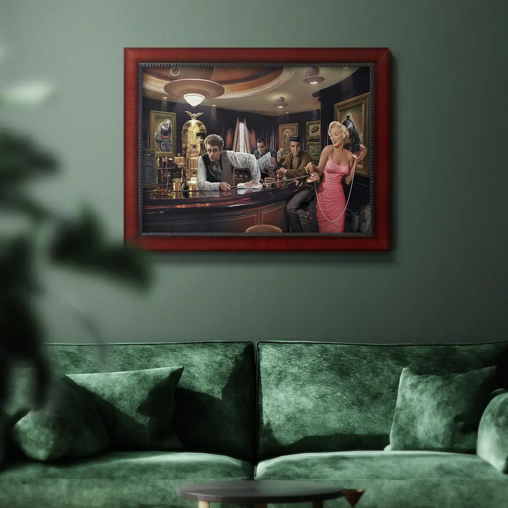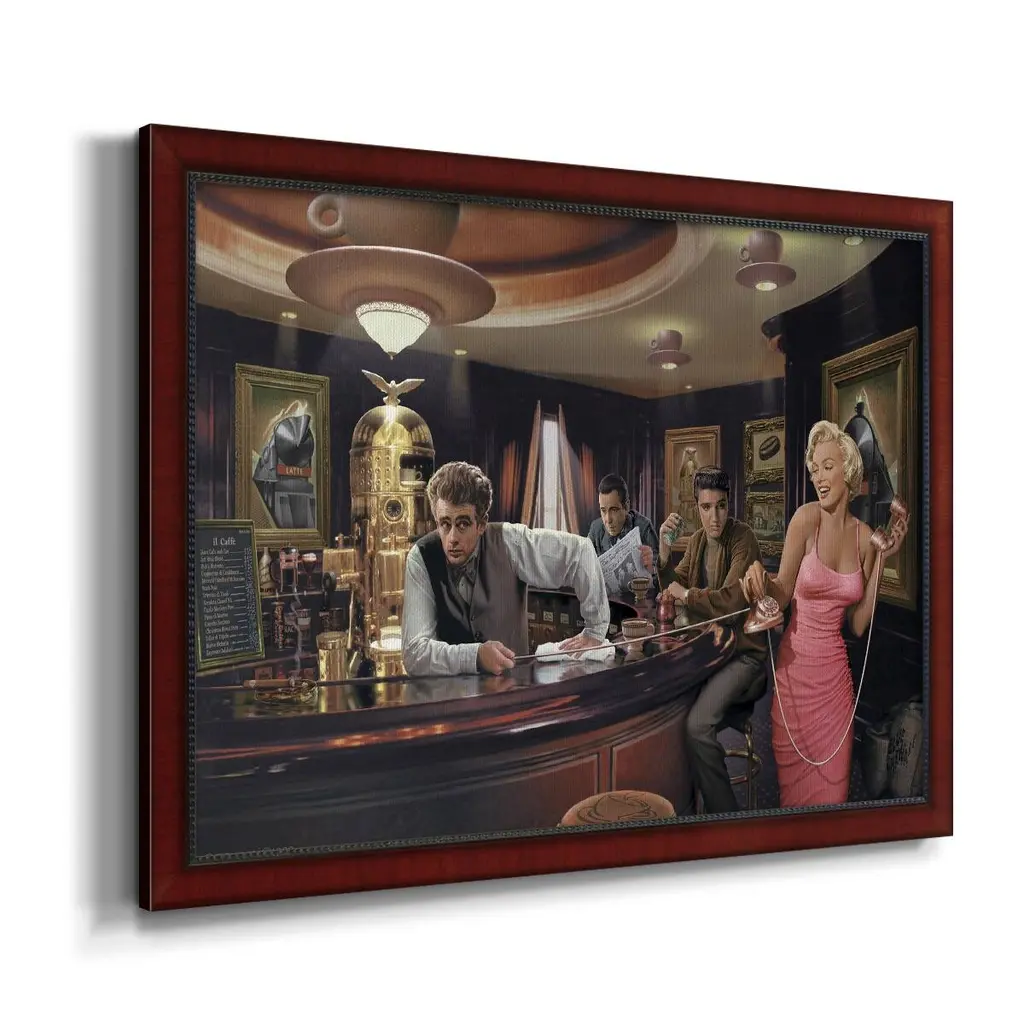 Java Dreams Premium Framed Canvas- Ready to Hang A Premium Framed Canvas created to last. Framed in distressed wood and available in an array of sizes and colors Featuring a beveled a solid wood stretcher bar, each piece comes ready to hand 3 SIZES AVAILABLE 16''X20'' - Overall Size 18'X27'' - Overall Size 24''x36'' - Overall Size Each piece is made to order. Each piece comes with hanging hardware. Made in the USA Ready to Hang Giclee Paper Print Acrylic Glass Beveled Matt Board