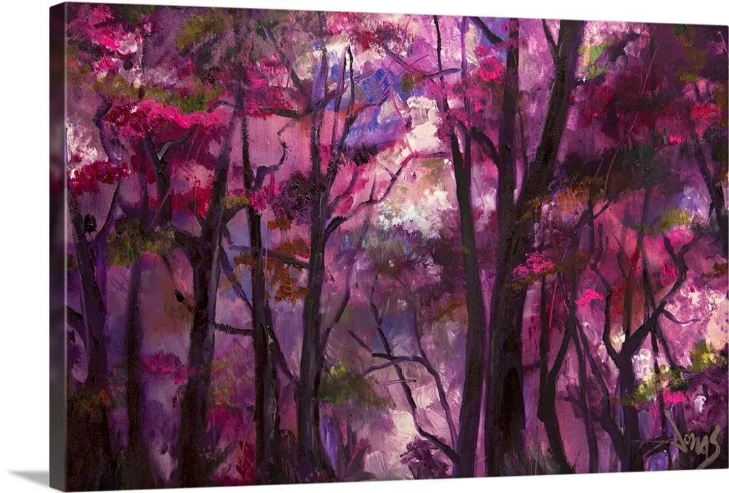 Vibrant hues compose this depiction of nature's beauty, painted by Aldi of Java. The artist reunites acrylic hues on canvas, creating sinuous lines to form each detail of the forest that composes this impressionist painting—made in honor of Mother Nature's magical spirit.The artwork arrives signed and unstretched.