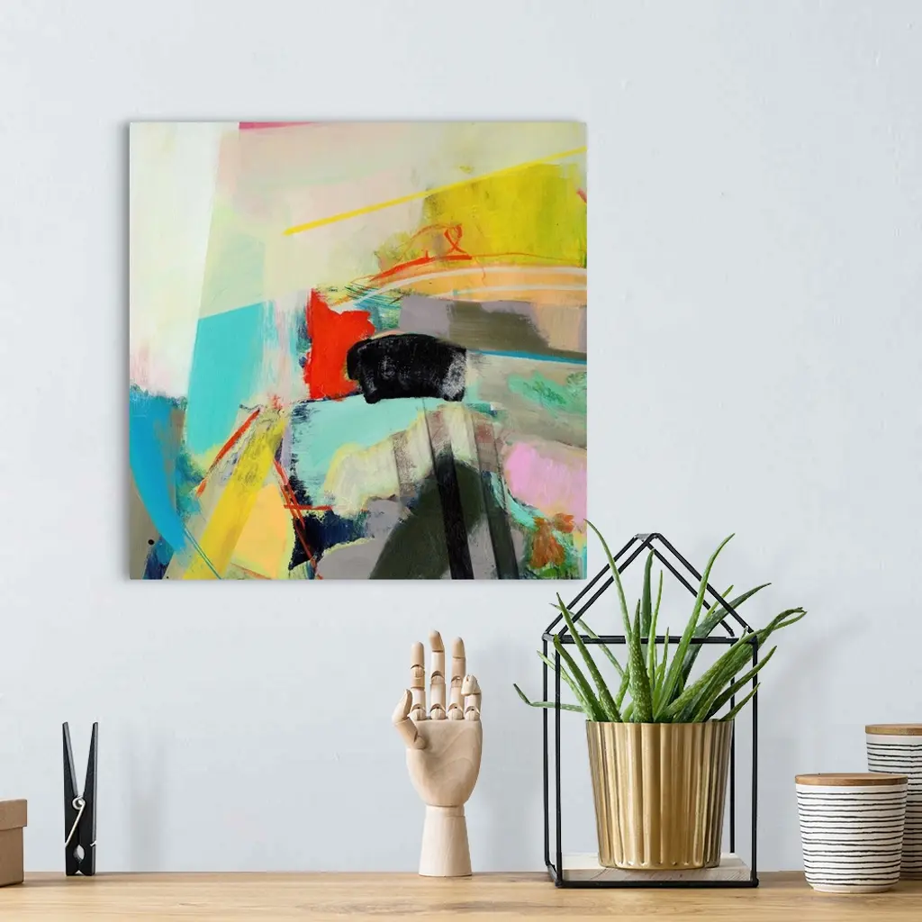 Contemporary abstract painting using wild colors.