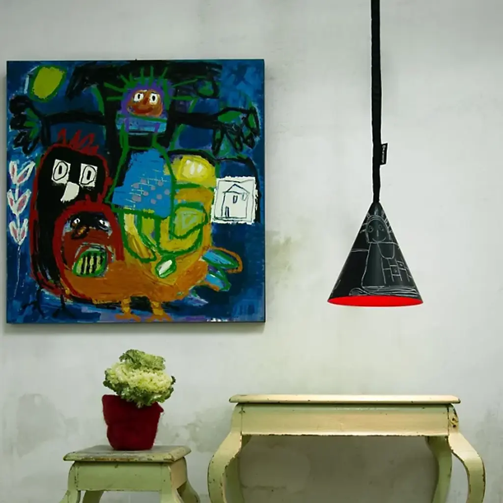Showcase your creativity or set a mood with this inventive blackboard design. The Jazz Lavagna Pendant from In-Es Art Design tells the story of your rooms with or without the lights on. Italy-based In-Es Art Design makes pieces that blur the lines between art and design. Their creations are as functional as they are simple pleasures to look at. This idea reflects in the simple form yet multi-use blackboard surface of the cone shade. It invites a playful sketch or a heartfelt mantra from a colorful piece of chalk. A textured nebulite interior complements the blackboard, using its surface to catch warmth from the bulb inside. Light exits out with the same shape as the shade, making for a clean down glow. Fitting on its own or as a series, the piece hangs in the air with stylish flair stemming from a nylon-wrapped cord.
