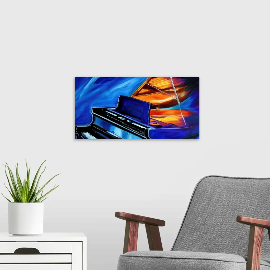 This painting is of the grand piano, in bold striking color and exciting brush stokes.