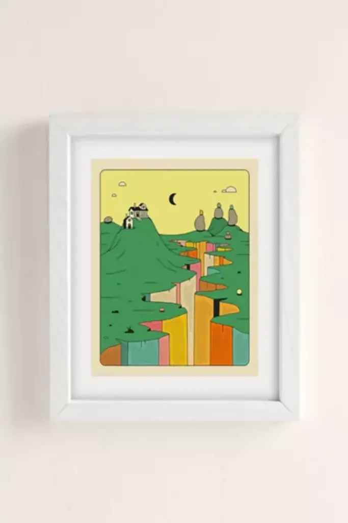 Art print by Jazzberry Blue featuring a retro landscape. Printed on archival paper made from cotton pressed in Italian mills, this high-quality art print is available in sizes and frames just right for your space. First select your frame (or go frameless), then select your size. **About the Frames** \- The exact width of each frame may vary slightly \- All frames are manufactured in the US \- Matte frames are durable poly \- Wood frames are recycled wood \- All are fitted with protective plexiglass \- Finished with wood moldings, archival backer and protective bumpers **Size** \- Available in multiple sizes \- Use the Size Guides to find the size that fits your space **Content + Care** \- Wipe clean \- Made in the USA