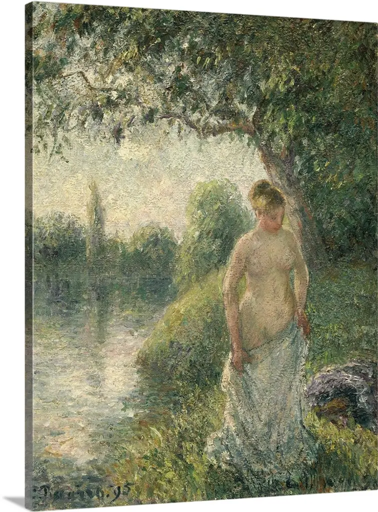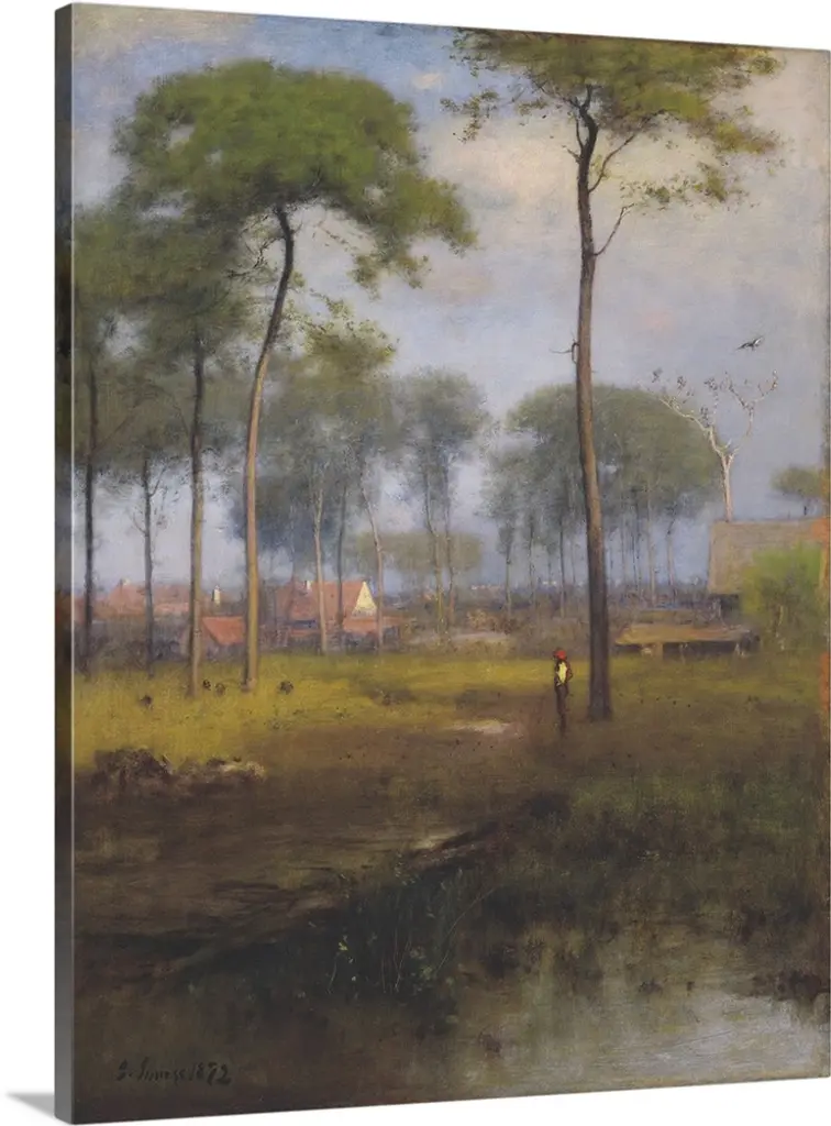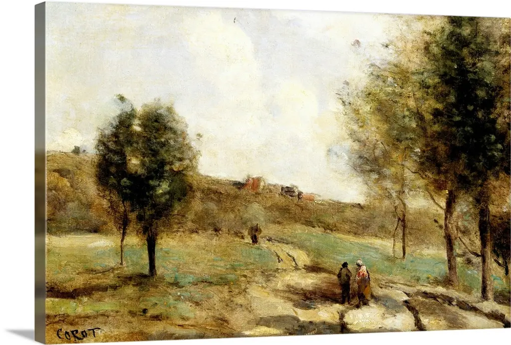 15" x 30" Jean-Baptiste-Camille Corot Pond with Three Cows (also known as Souvenir of Ville d''Avray) gallery wrapped premium canvas print reproduced to meet museum quality standards. Our museum quality canvas prints are produced using high-precision print technology for a more accurate reproduction printed on high quality canvas with fade-resistant, archival inks. Our progressive business model allows us to offer works of art to you at the best wholesale pricing, significantly less than art gallery prices, affordable to all. This artwork is gallery wrapped by one of our expert framers, wrapped with 1.5" deep heavy duty wooden stretcher bars, to hang frameless for a high-end designer look. Our gallery wrapped canvas print comes with hardware, ready to hang on your wall. We present a comprehensive collection of exceptional canvas art reproductions by Jean-Baptiste-Camille Corot.