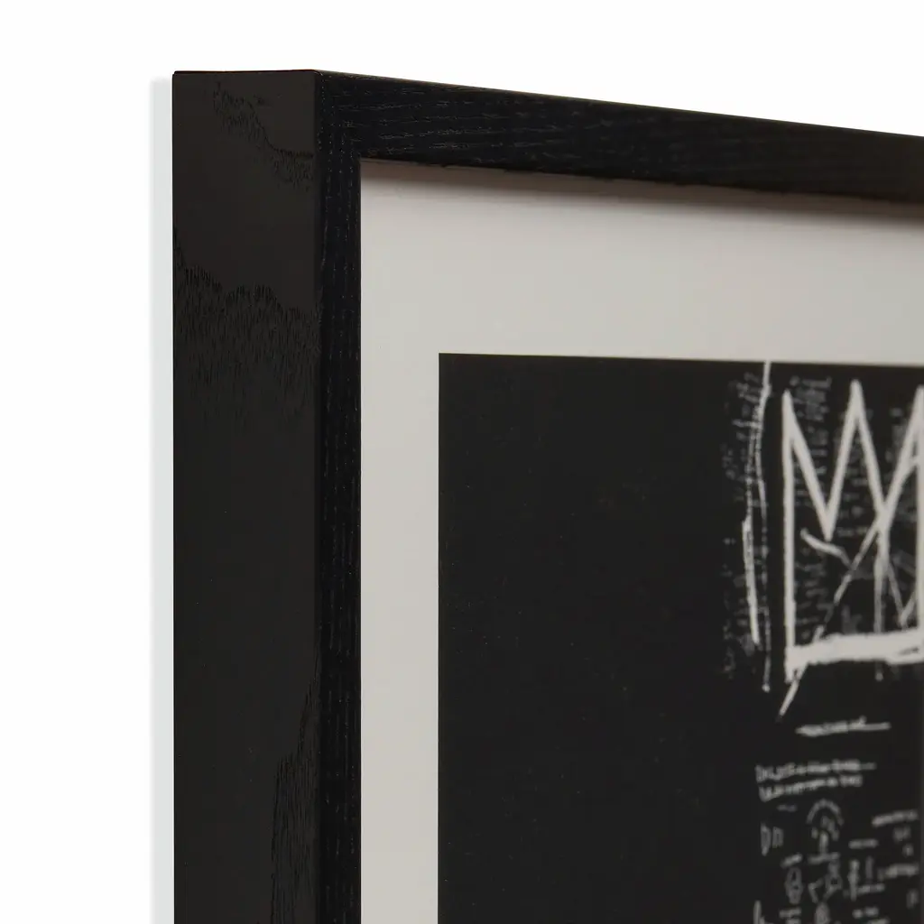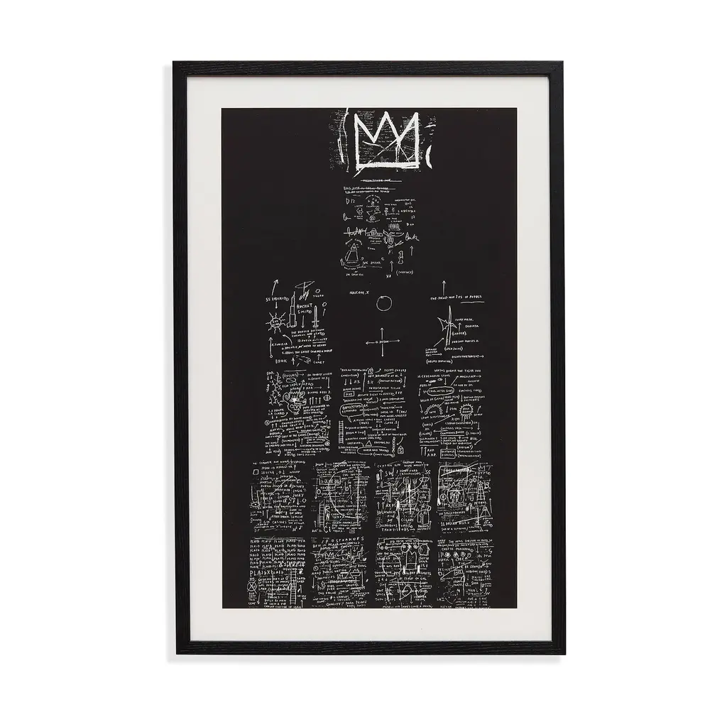 This print features a reproduction of Tuxedo (1982–83) by Jean-Michel Basquiat, an artist with work in MoMA's collection. It's framed in sustainably sourced black ash with a gallery acrylic finish. Strung for hanging.