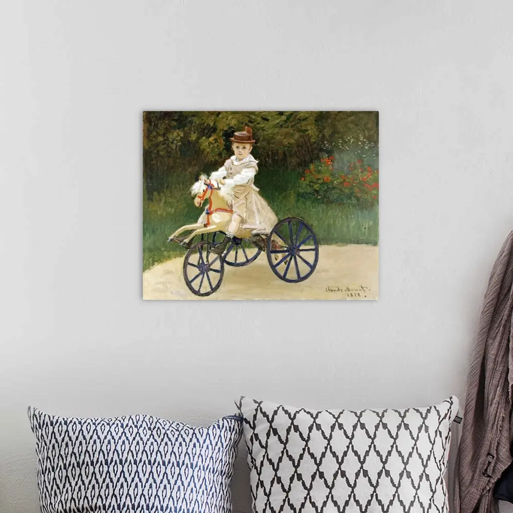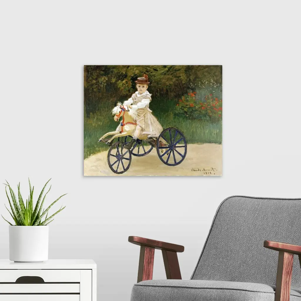 When Monet painted this picture of his elder son, Jean, in the summer of 1872, the artist and his family had recently returned to France from their self-imposed exile during the Franco-Prussian War. Through the efforts of the dealer Paul Durand-Ruel, the artist's finances had begun to improve, enabling the once-impoverished Monets to rent a house in Argenteuil, an agreeable suburb northwest of Paris. For this portrait, Monet posed the five-year-old in the garden of their new home. Monet never exhibited the painting but kept it throughout his life.