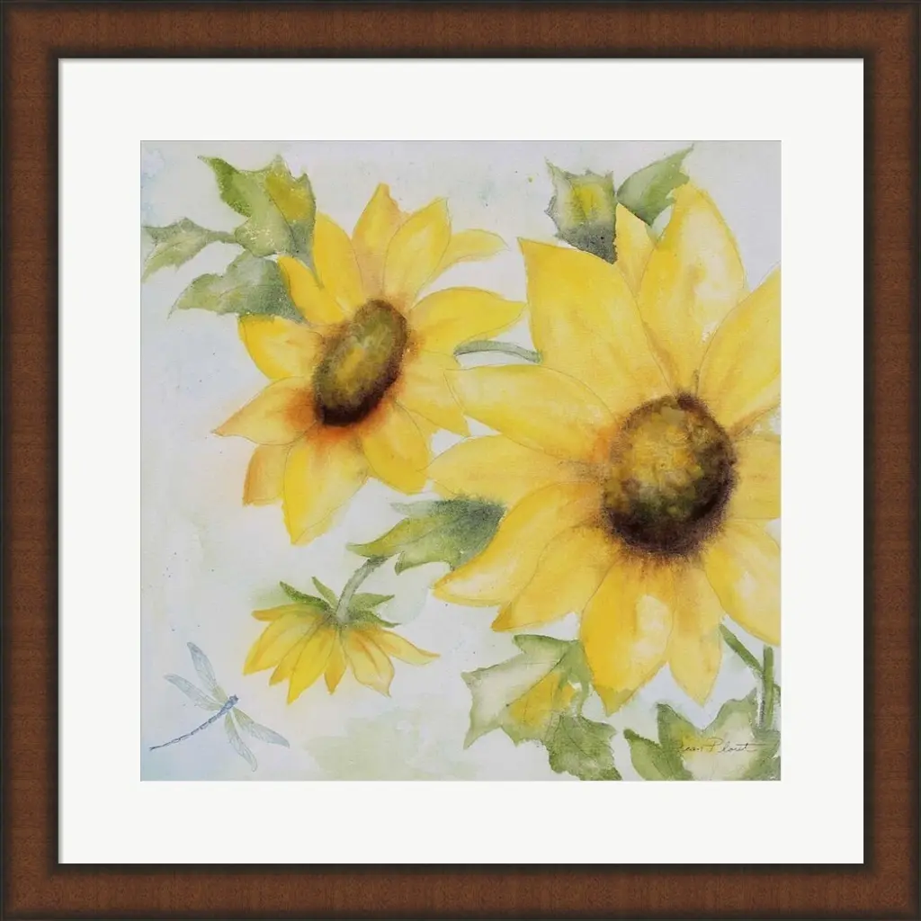 Sunny Flowers B by Jean Plout is a high quality piece of framed artwork. The finished size of this piece is 19.75" X 19.75". It has a Slim Teak Espresso Brown Edges frame, is single matted and finished with high quality Glass. 100% Satisfaction Guaranteed.