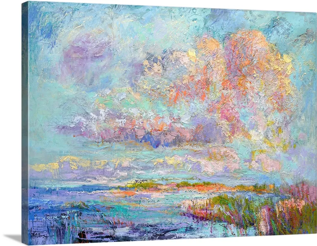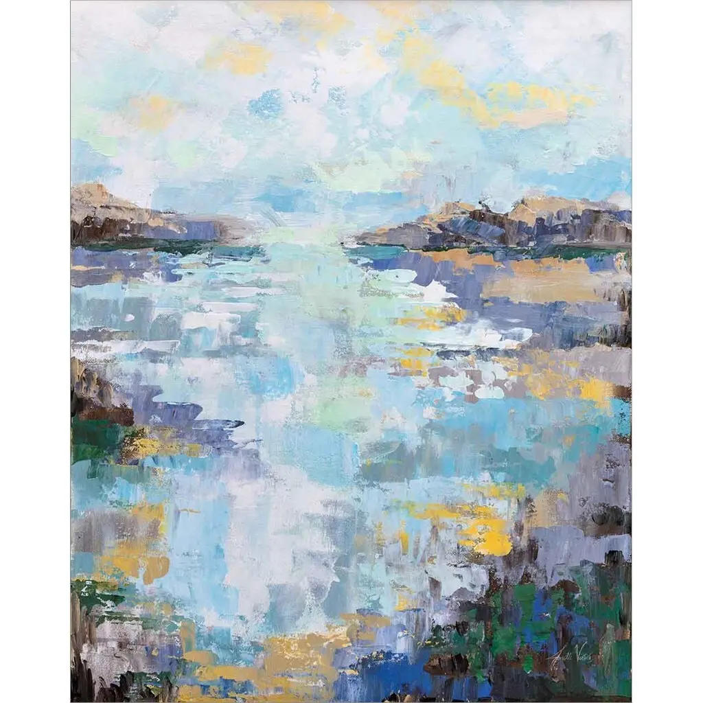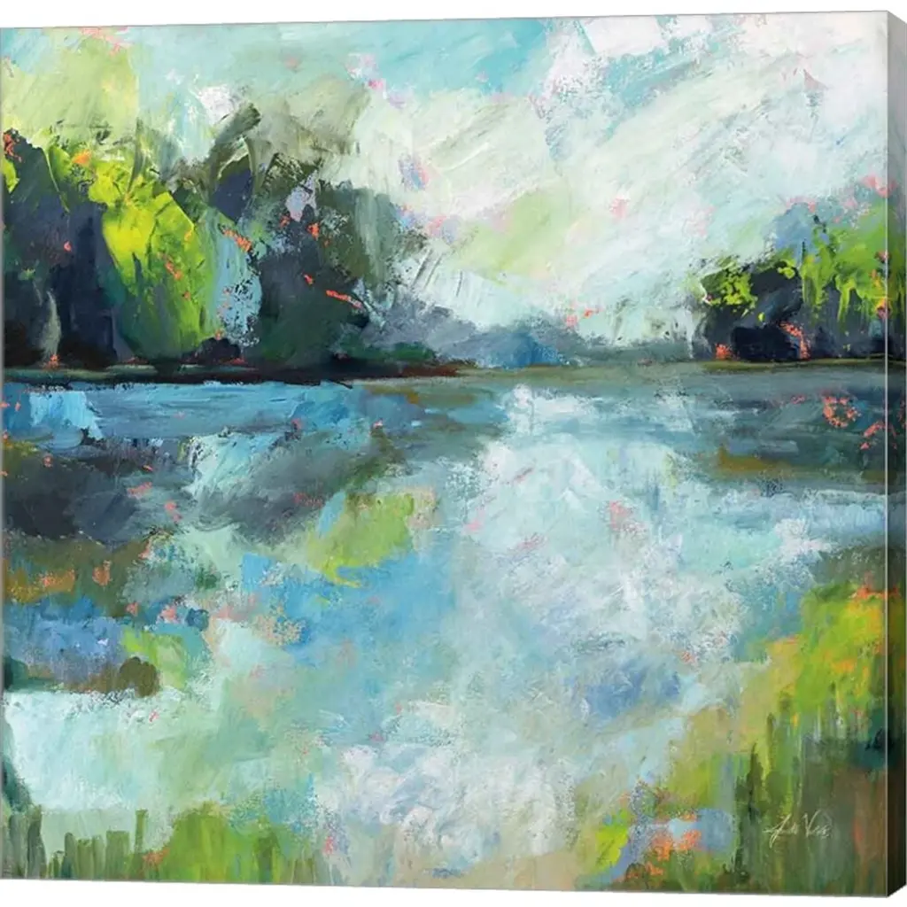 Calm Waters by Jeanette Vertentes is a high quality piece of canvas artwork. The finished size of this piece is 24" X 24", and it has a depth 1.5". There is a UV protective coating over the entire image, and it is ready to hang on your wall with no hardware required. 100% Satisfaction Guaranteed.