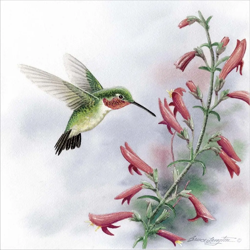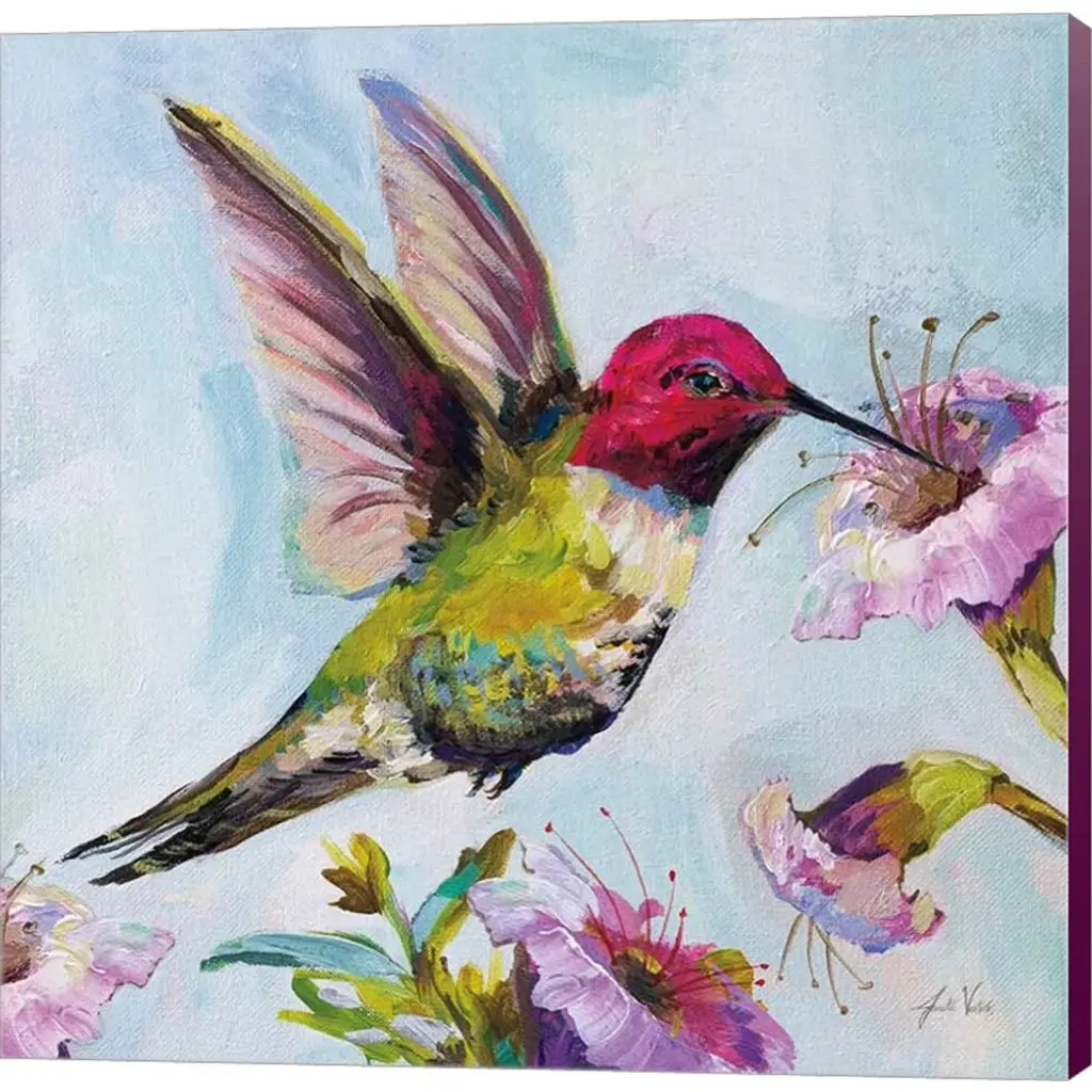 Hummingbird I Florals by Jeanette Vertentes is a high quality piece of canvas artwork. The finished size of this piece is 12" X 12", and it has a depth 1.5" with claretwine painted sides. There is a UV protective coating over the entire image, and it is ready to hang on your wall with no hardware required. 100% Satisfaction Guaranteed.