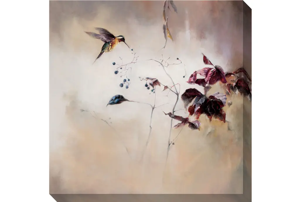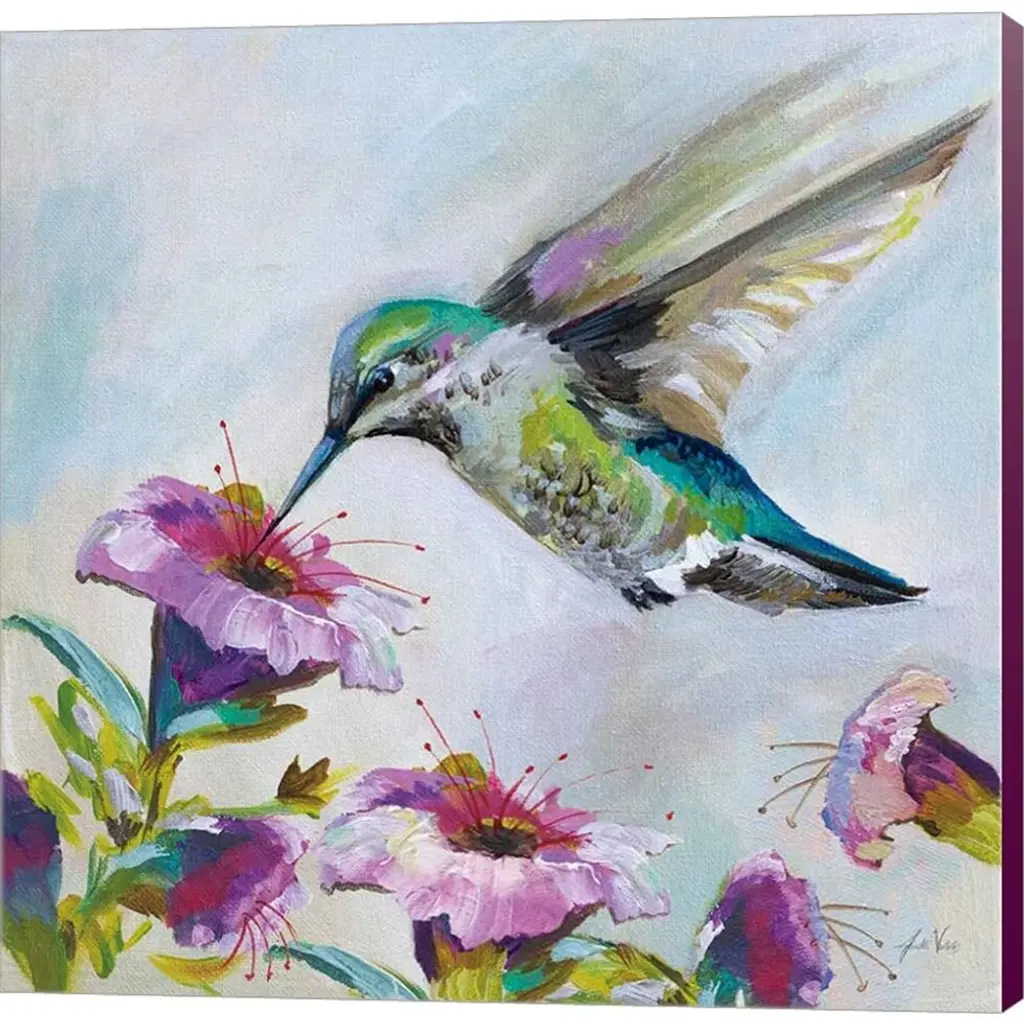 Hummingbird II Florals by Jeanette Vertentes is a high quality piece of canvas artwork. The finished size of this piece is 24" X 24", and it has a depth 1.5" with claretwine painted sides. There is a UV protective coating over the entire image, and it is ready to hang on your wall with no hardware required. 100% Satisfaction Guaranteed.