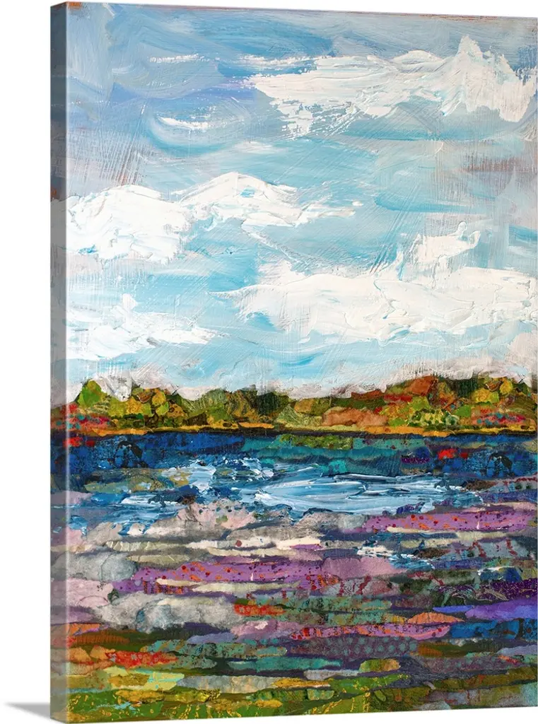 The Shore by Jeanette Vertentes is a high quality piece of canvas artwork. The finished size of this piece is 24" X 24", and it has a depth 1.5". There is a UV protective coating over the entire image, and it is ready to hang on your wall with no hardware required.