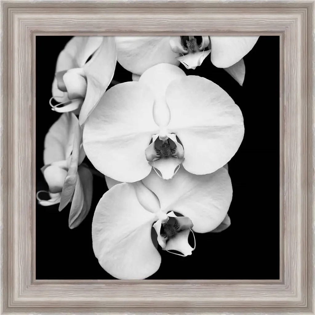Orchid Portrait I by Jeff Maihara is a high quality piece of framed artwork. The finished size of this piece is 20" X 20". It has a Weathered White Distressed frame and is finished with high quality Acrylic Plexiglass.. 100% Satisfaction Guaranteed.