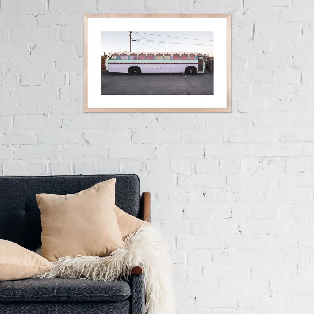 Exclusive to One Kings Lane: Jeff Seltzer's photograph of the painted bus outside Joshua Tree Saloon shows a more quotidian aspect of the desert town. Printed on high-quality paper, the work arrives framed and ready to hang.Static treatments of our seemingly ordinary urban landscape, the photography of Los Angeles-based Jeff Seltzer reveals the effect of human occupation on contemporary environments. His images allow viewers to see beauty in the everyday and show harmony in scenes and scenarios we take for granted.