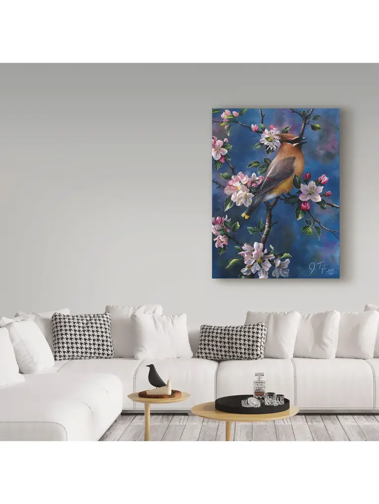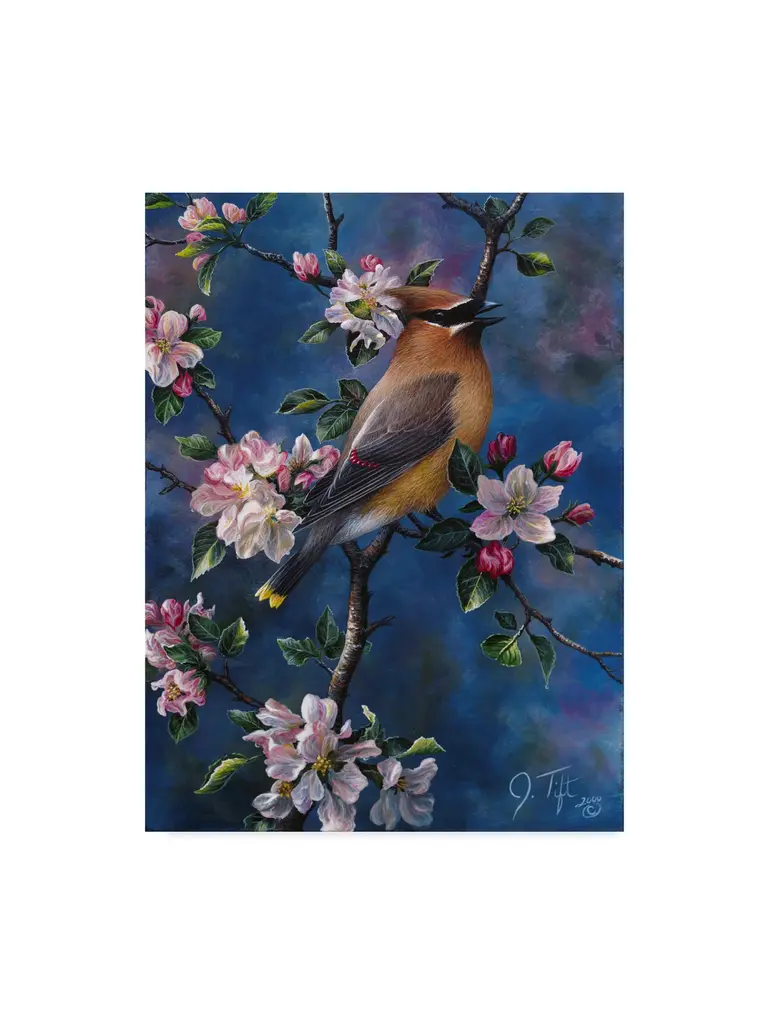 Artist: Jeff TiftSubject: AnimalsStyle: Natural ModernProduct Type: Gallery-Wrapped Canvas ArtMade in USAThis ready to hang, gallery-wrapped art piece features a waxwing sitting on a floral branch.For more than a decade, wildlife artist Jeff Tift has dedicated himself to his passion portraying the natural beauty of the magnificent Pacific Northwest through his paintings. A native of Washington state, Jeff draws his inspiration from his surroundings, researching and studying the wildlife indigenous to his home. Jeffs relentless devotion to capturing the beauty of nature on canvas combined with his enormous talent has brought him remarkable success and recognition. His works have been represented in some of the most prestigious wildlife art exhibitions in the United States and Canada, and he is the proud recipient of the Best of Show award at the famed Pacific Rim Wildlife Show and the Peoples Choice Award at the Milwaukee Sports Show.Giclee (jee-clay) is an advanced printmaking process for creating high quality fine art reproductions. The attainable excellence that Giclee printmaking affords makes the reproduction virtually indistinguishable from the original piece. The result is wide acceptance of Giclee by galleries, museums, and private collectors. Gallery wrap is a method of stretching an artist's canvas so that the canvas wraps around the sides and is secured a hidden, wooden frame. This method of stretching and preparing a canvas allows for a frameless presentation of the finished painting.