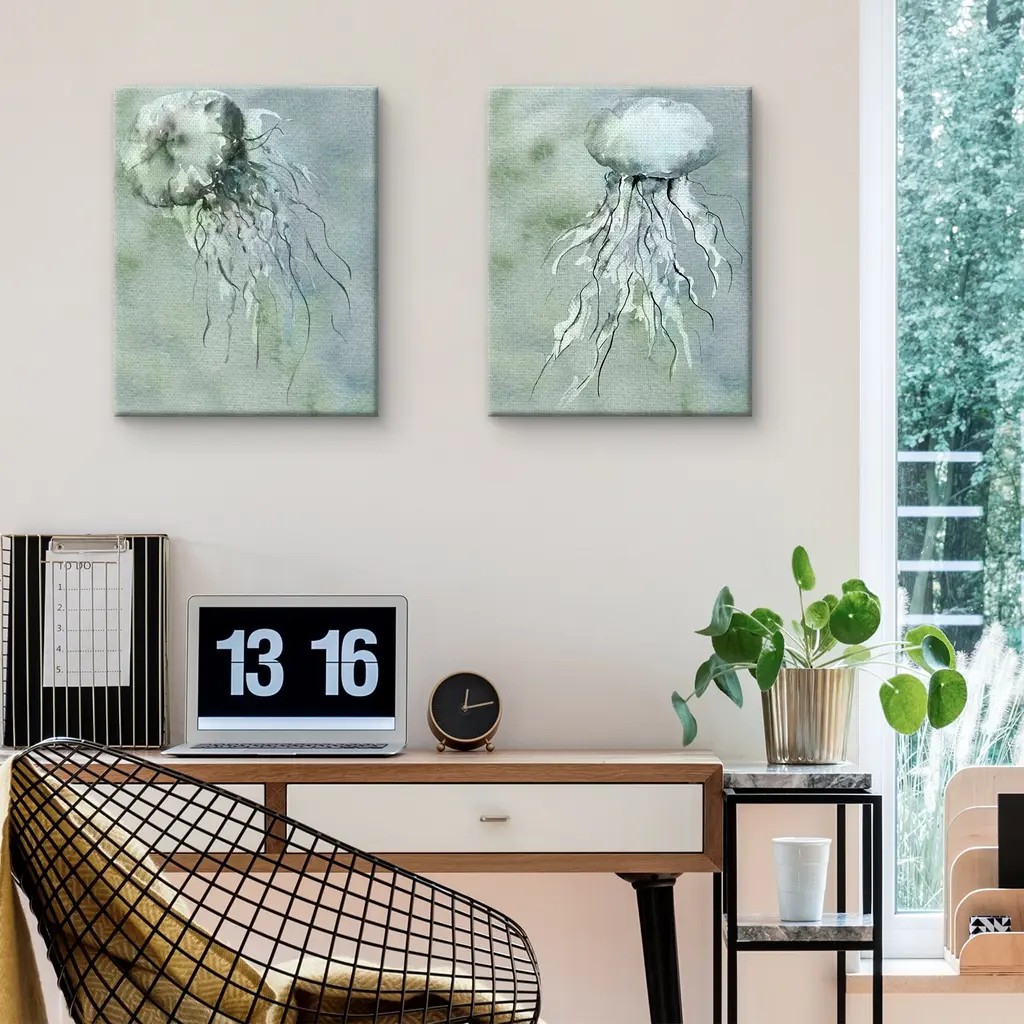 Jellyfish Blue Grey I & Iii By Brandi Fitzgerald Canvas Art Prints - 16x20x2
