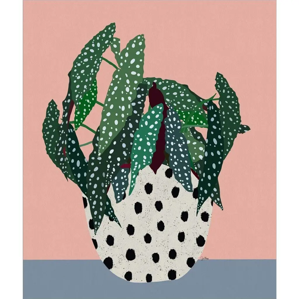 Plant in Dotted Pot by Jen Bucheli is a high quality piece of framed artwork. The finished size of this piece is 18" x 20.25". It has a Petite Black with Flat Front frame, White mat and is finished with high quality Acrylic Plexiglass. 100% Satisfaction Guaranteed.