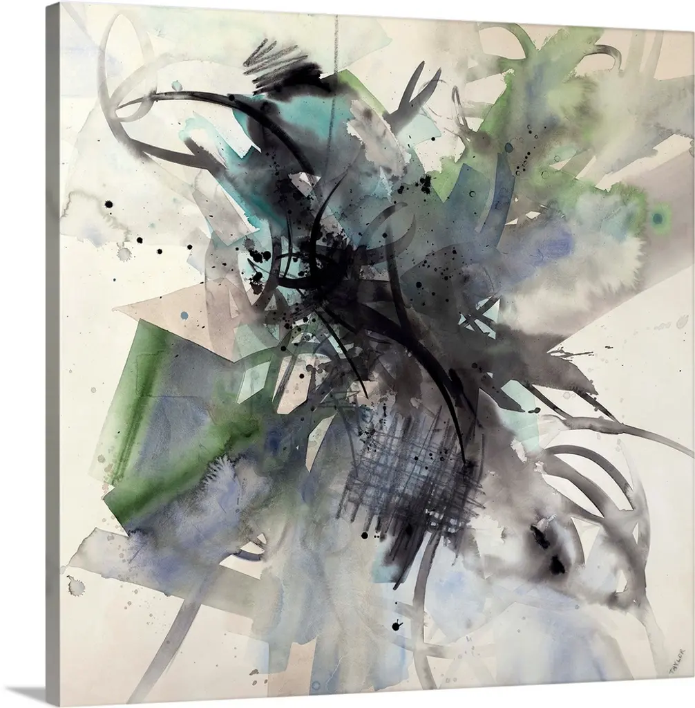 Abstract Coordinates I by Jennifer Goldberger is a high quality piece of canvas artwork. The finished size of this piece is 24" X 24", and it has a depth 1.5" with black painted sides. There is a UV protective coating over the entire image, and it is ready to hang on your wall with no hardware required.