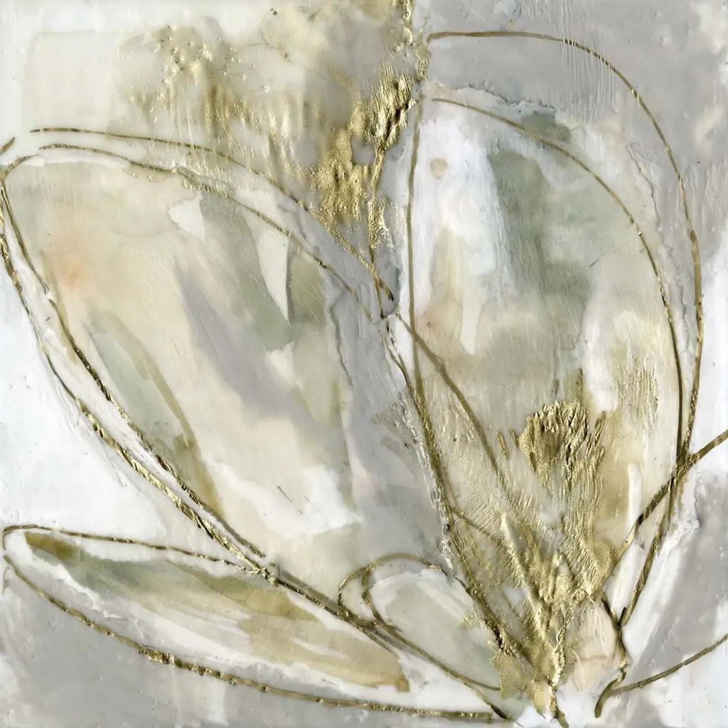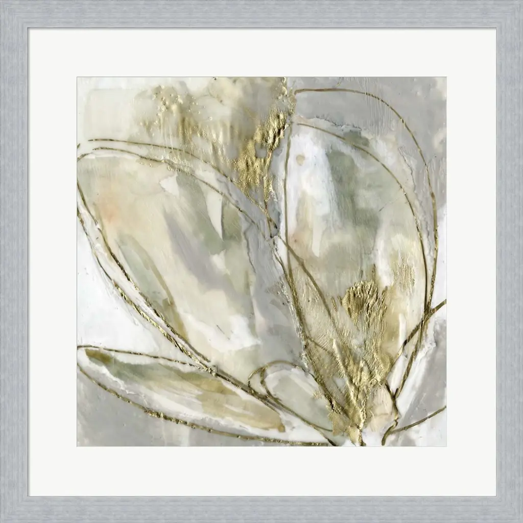 Blooming Gold II by Jennifer Goldberger is a high quality piece of framed artwork. The finished size of this piece is 19.5" X 19.5". It has a Slim Platinum Silver frame, is single matted and finished with high quality Glass. 100% Satisfaction Guaranteed.