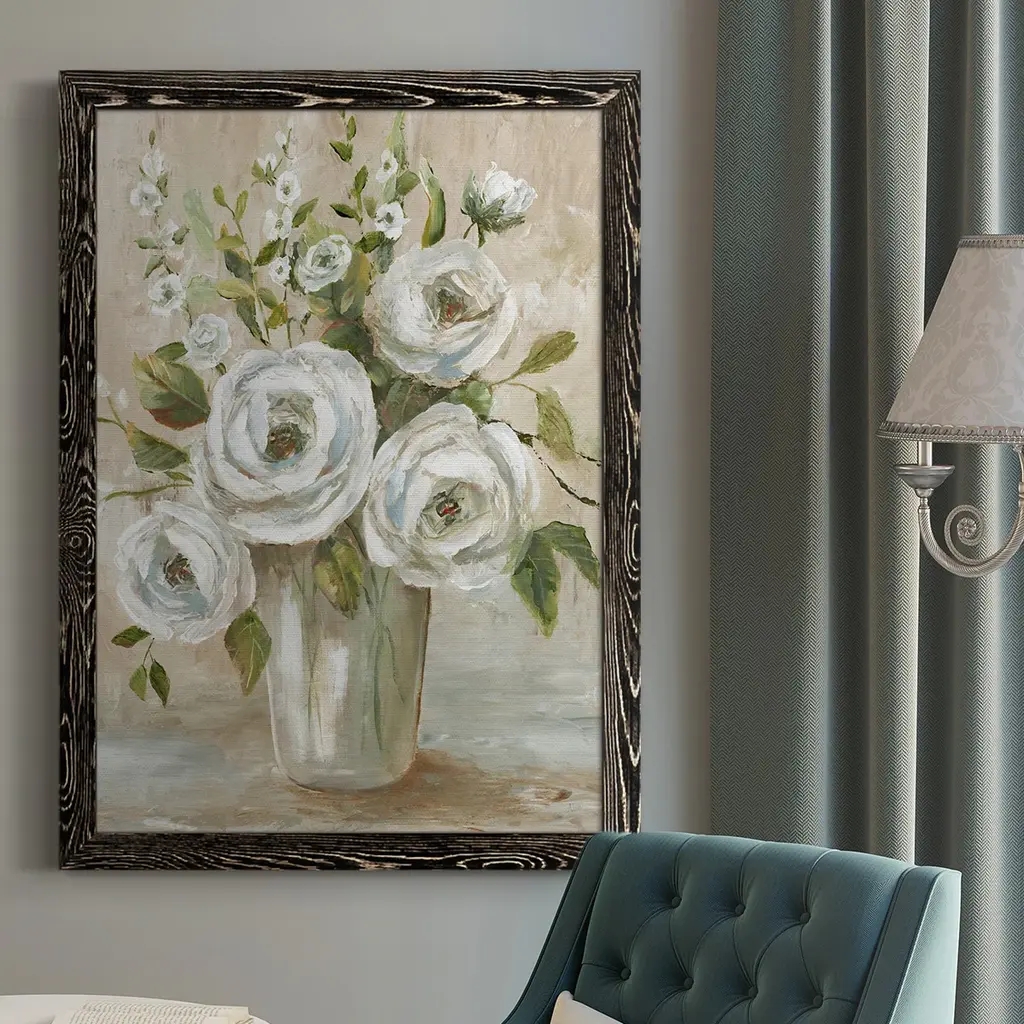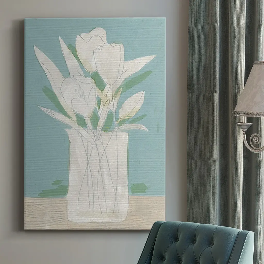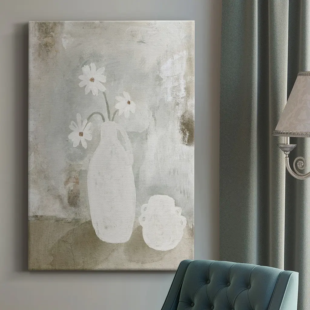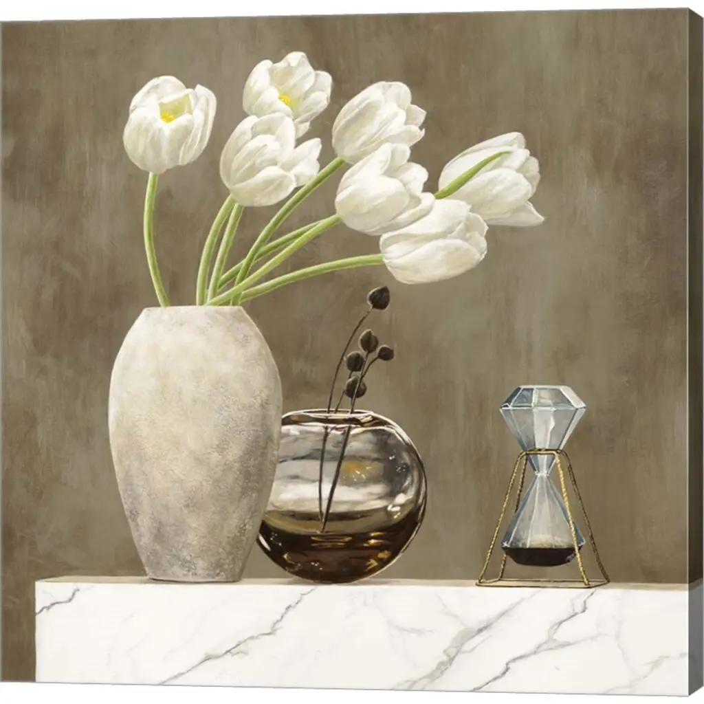 Floral Setting on White Marble I by Jenny Thomlinson is a high quality piece of canvas artwork. The finished size of this piece is 12" X 12", and it has a depth 1.5". There is a UV protective coating over the entire image, and it is ready to hang on your wall with a standard drywall screw (not included). 100% Satisfaction Guaranteed.