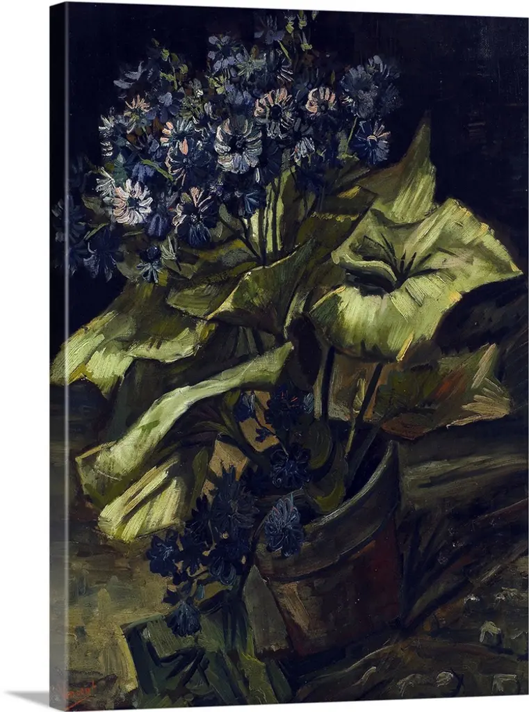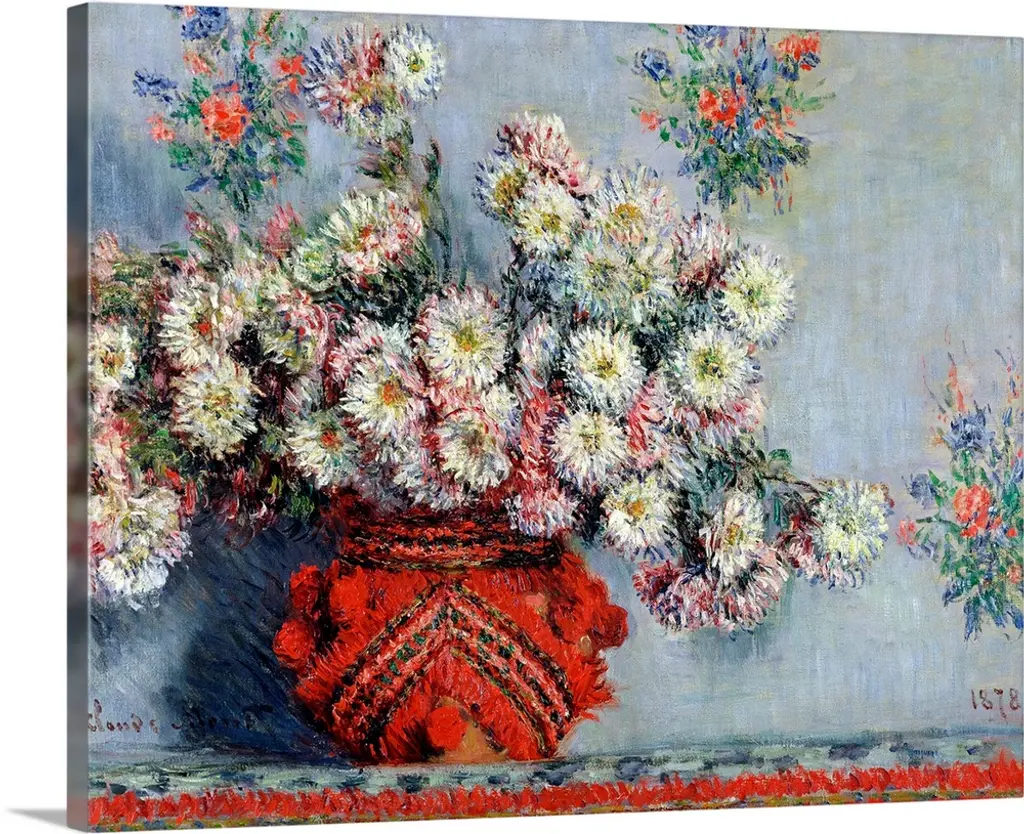 Jerusalem Artichoke Flowers, by Claude Monet, 1880, French impressionist painting, oil on canvas. Flower still life of 1880 shows Monet's evolution to applying paint in similar strokes of varied color over the entire canvas