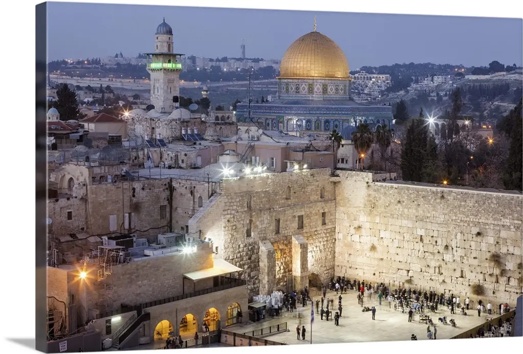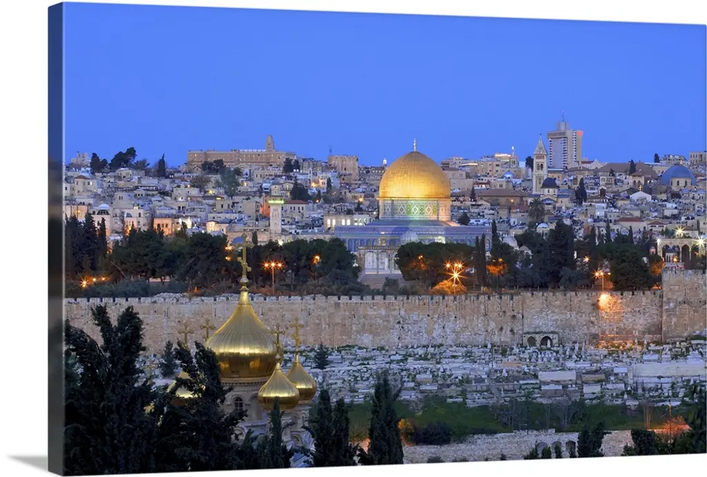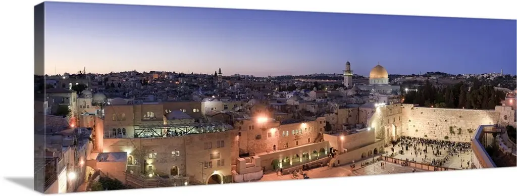 "Jerusalem Cityscape Panorama" Photo Metal Wall Art, 3 Panels, 36"x28"