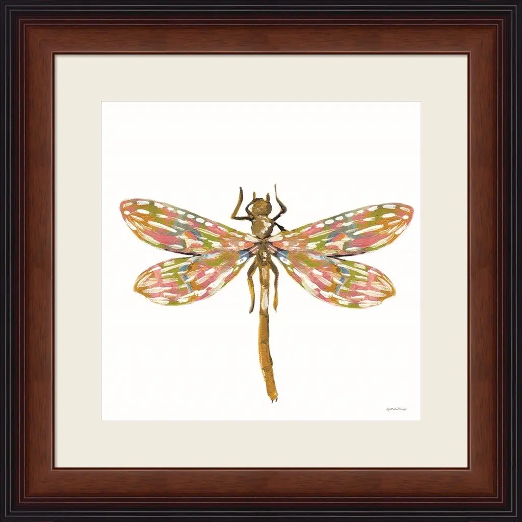 Dainty Dragonfly by Jessica Mingo is a high quality piece of framed artwork. The finished size of this piece is 19" X 19". It has a Brown Finish Stepped Front frame, is single matted and finished with high quality Acrylic Plexiglass. 100% Satisfaction Guaranteed.