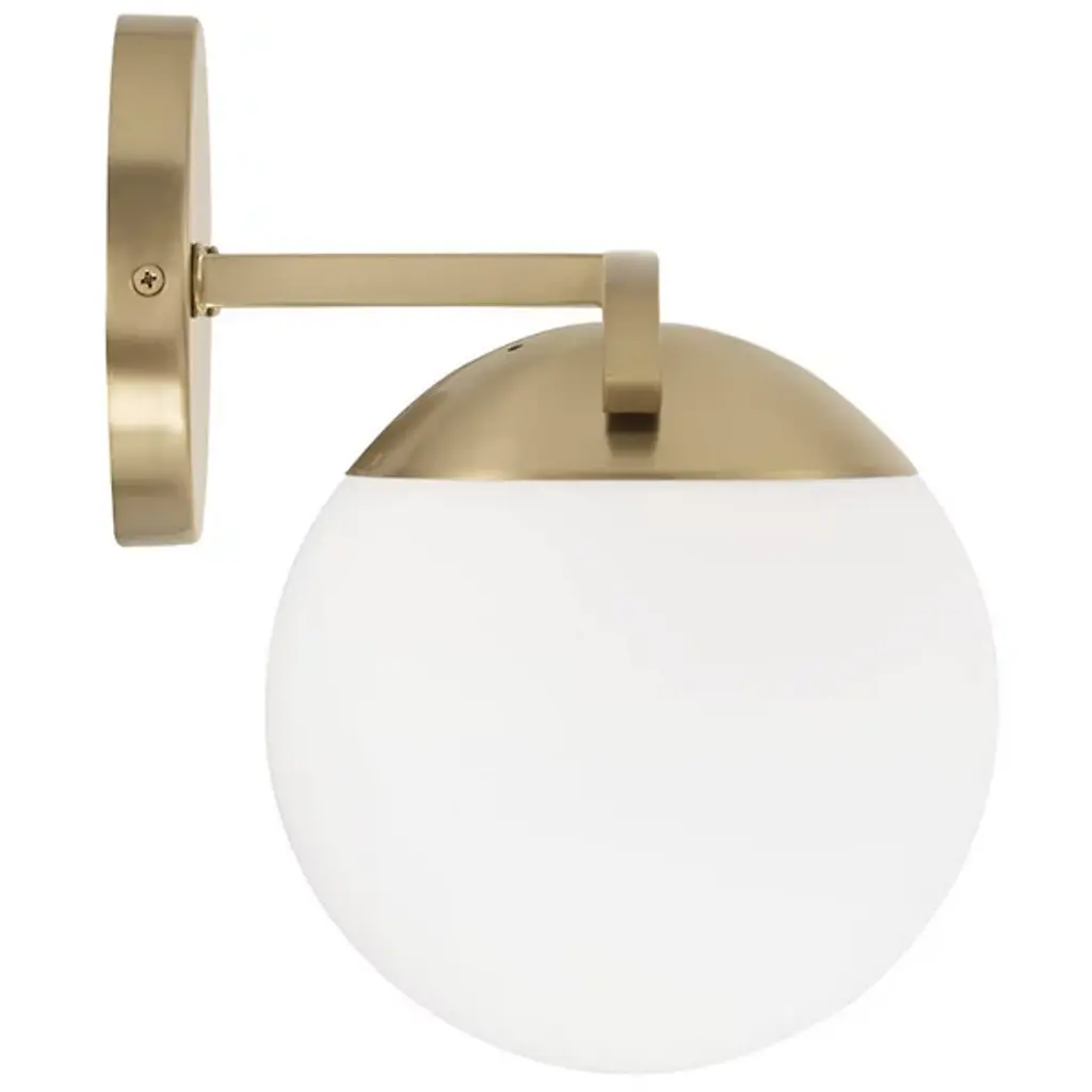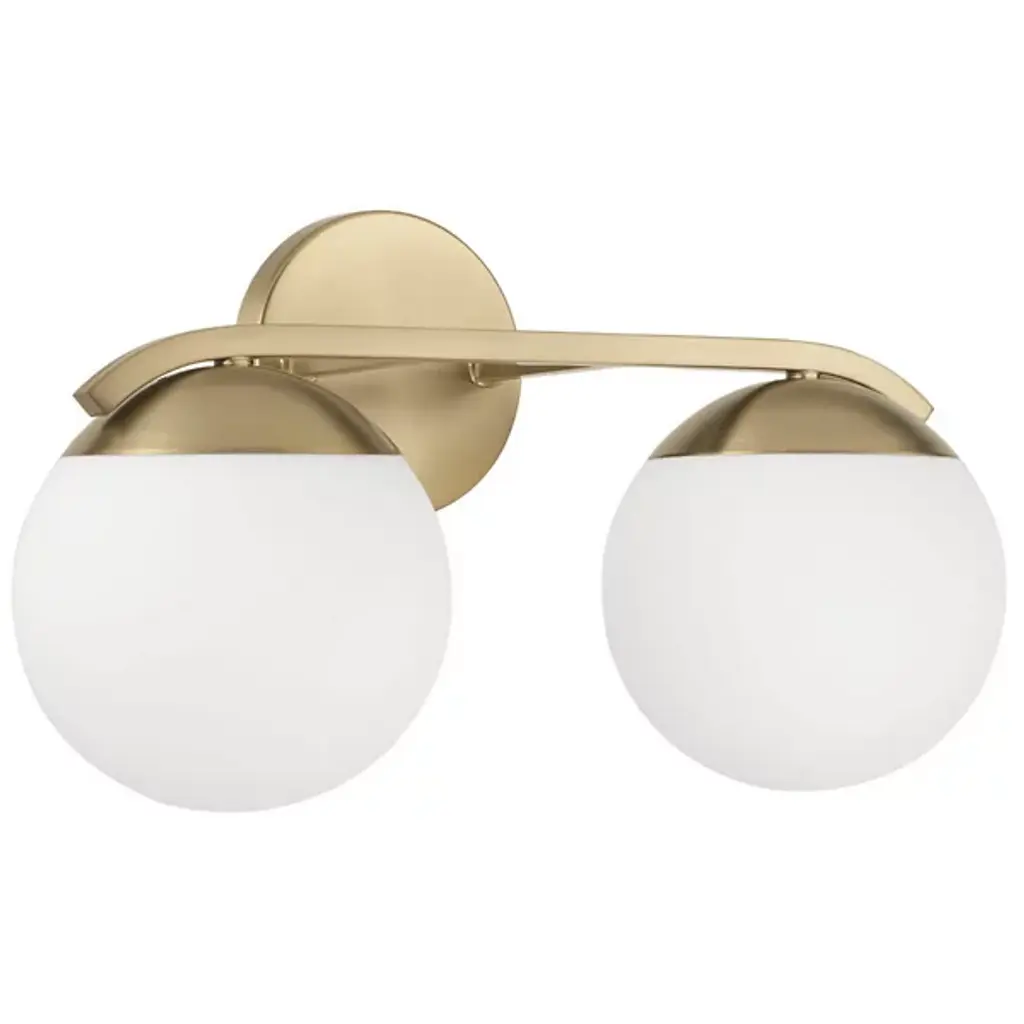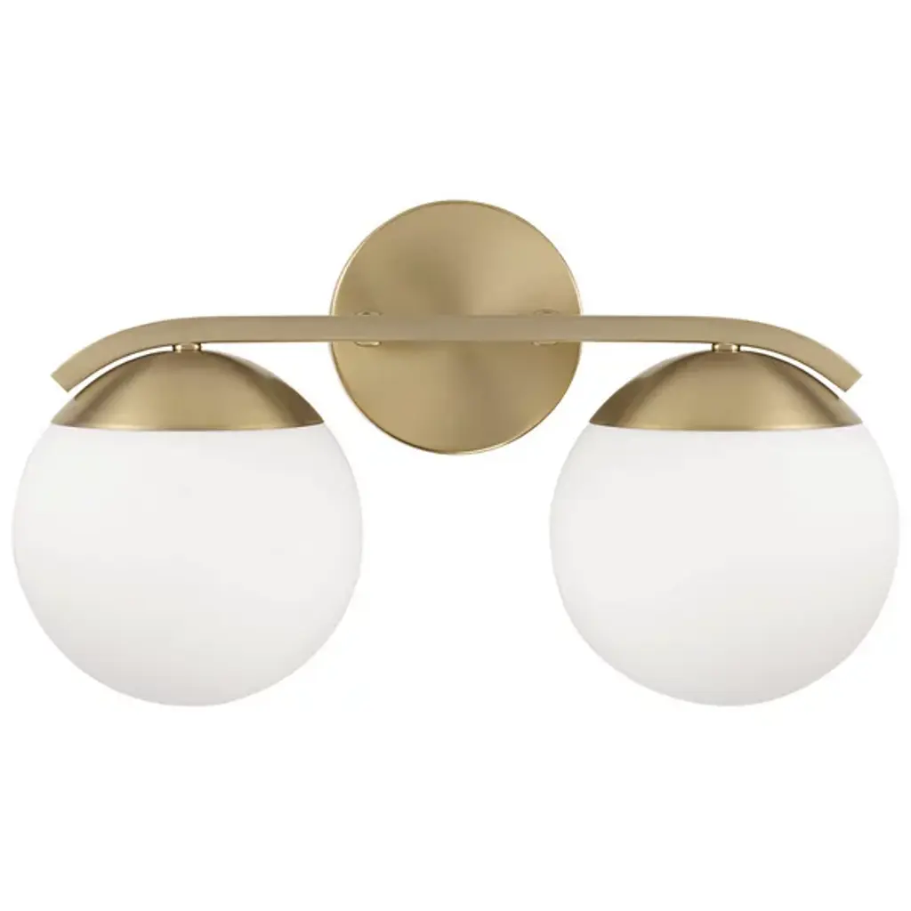 The Jessup Vanity Light from Alder & Ore is meticulously crafted with circular forms and soft white glass. The vanity's curved arms and accents exude an air of elegant style, while the finish imparts a sophisticated shimmer. Transform your powder room into a haven of refined beauty, where the interplay of gentle curves and the radiant glow of soft white glass harmonize to create a luminous and chic ambiance.