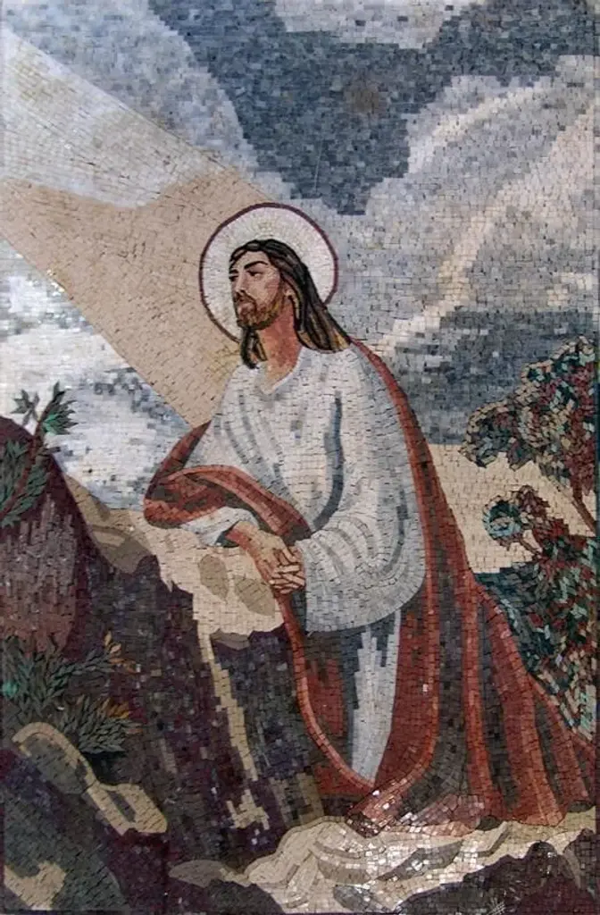 Introducing our exquisite "Jesus Christ Transfiguration Religious Marble Mosaic," a truly remarkable piece of art that captures the divine moment of the Mount of Transfiguration. This handcrafted mosaic is intricately designed to showcase the profound biblical event where Jesus reveals his divine glory to his disciples, accompanied by Moses and Elijah. Each piece of this mosaic is crafted from high-quality marble, ensuring exceptional durability and a vibrant palette that brings the scene to life. The skilled artisans pour their heart and soul into every creation, ensuring that no two pieces are alike. The meticulous attention to detail highlights the depth and beauty of the figures and the heavenly light that envelops them, making this mosaic not just a decorative item but a deeply spiritual representation of faith.Perfect for churches, places of worship, or even your home, this artwork serves as a daily reminder of divine grace and enlightenment. Its captivating colors and stunning details are sure to inspire those who gaze upon it, providing a space for reflection and meditation. Elevate your sacred space with the "Jesus Christ Transfiguration Religious Marble Mosaic," a timeless piece that embodies devotion and artistry. Whether as a centerpiece in a chapel or a cherished addition to your personal collection, this mosaic will surely ignite the sense of wonder and reverence befitting such a magnificent biblical moment. Embrace the beauty of faith with this extraordinary masterpiece.