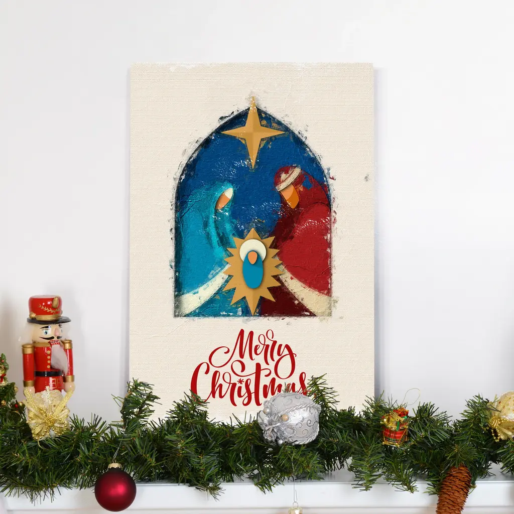 Jesus in Manger-Premium Gallery Wrapped Canvas - Ready to Hang A premium hand stretched gallery wrapped canvas print created to last. Featuring a beveled a solid wood stretcher bar, each piece comes ready to hand 5 SIZES AVAILABLE 8''X12'' - Overall Size 16''x20'' - Overall Size 18''x27'' - Overall Size 24''x36'' - Overall Size 32''x48'' - Overall Size Each piece is made to order. Built to Last Each piece comes ready to hang Solid wood stretcher Fade and Water resistant Made domestically