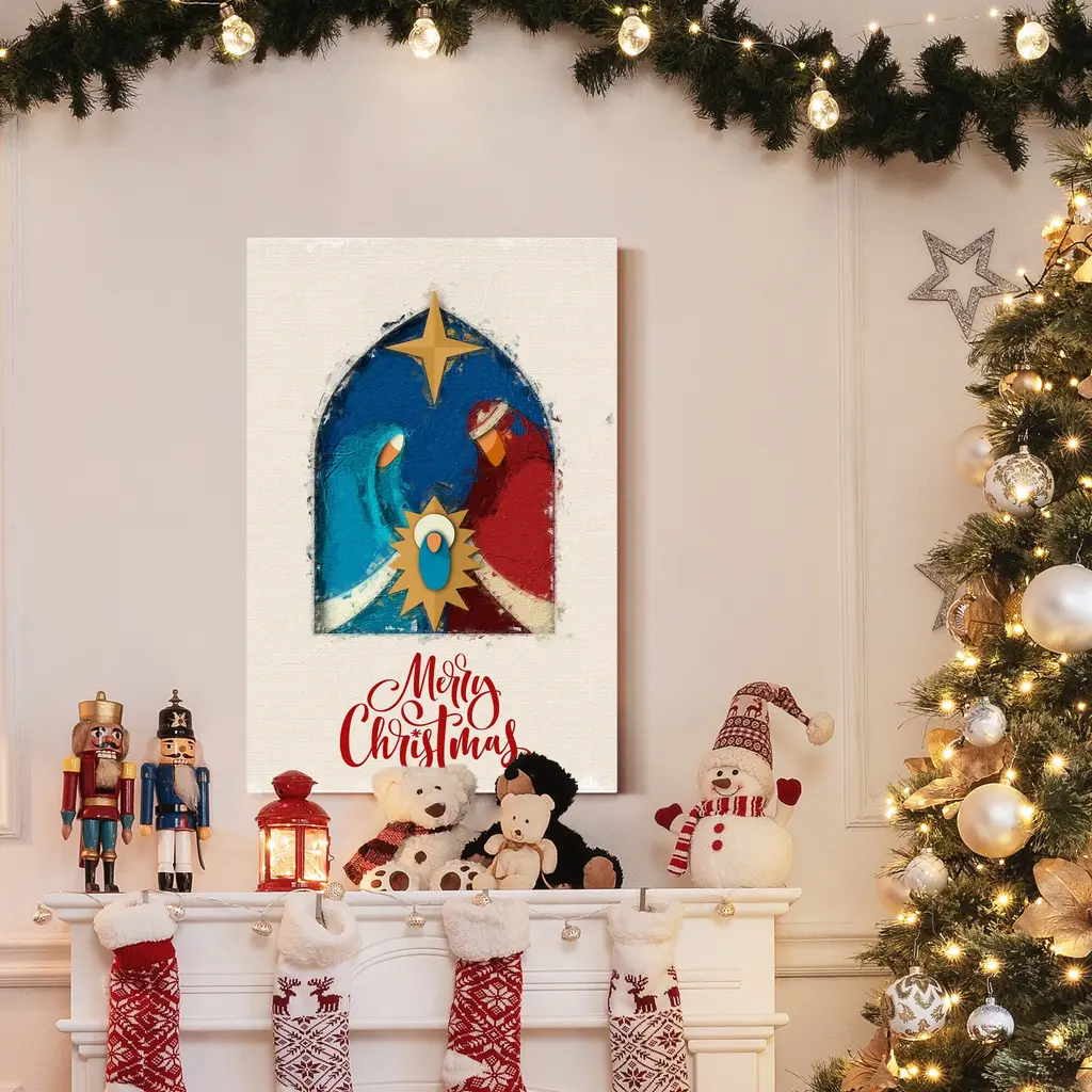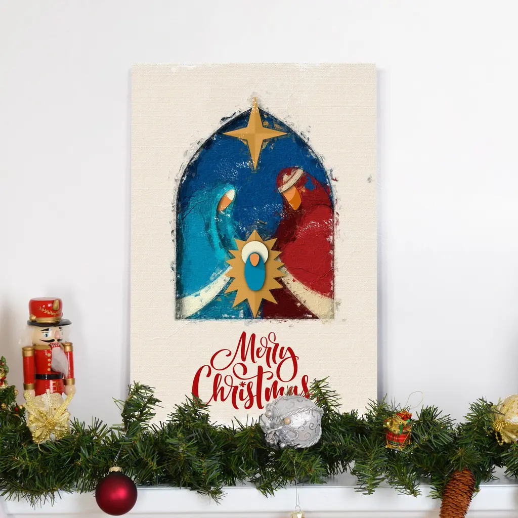 Jesus in Manger-Premium Gallery Wrapped Canvas - Ready to Hang A premium hand stretched gallery wrapped canvas print created to last. Featuring a beveled a solid wood stretcher bar, each piece comes ready to hand 5 SIZES AVAILABLE 8''X12'' - Overall Size 16''x20'' - Overall Size 18''x27'' - Overall Size 24''x36'' - Overall Size 32''x48'' - Overall Size Each piece is made to order. Built to Last Each piece comes ready to hang Solid wood stretcher Fade and Water resistant Made domestically