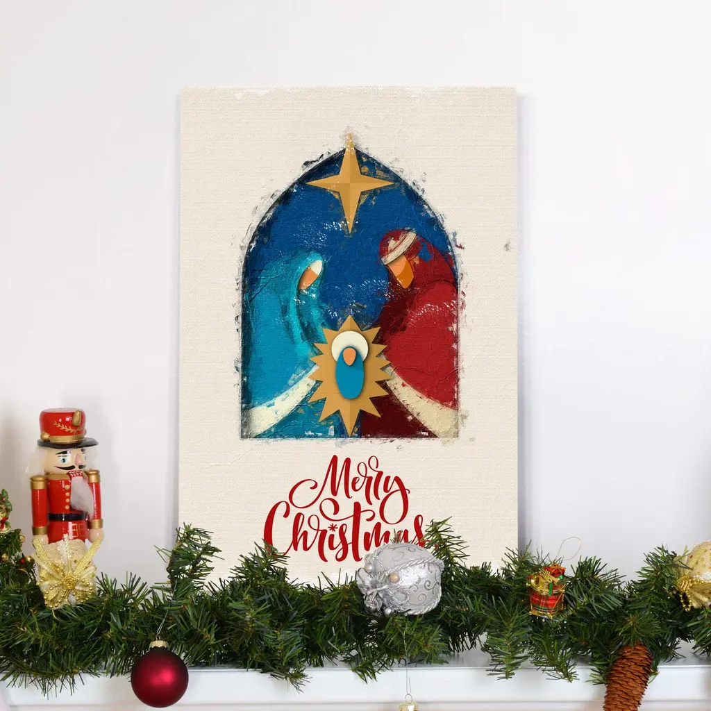 Jesus in Manger-Premium Gallery Wrapped Canvas - Ready to Hang A premium hand stretched gallery wrapped canvas print created to last. Featuring a beveled a solid wood stretcher bar, each piece comes ready to hand 5 SIZES AVAILABLE 8''X12'' - Overall Size 16''x20'' - Overall Size 18''x27'' - Overall Size 24''x36'' - Overall Size 32''x48'' - Overall Size Each piece is made to order. Built to Last Each piece comes ready to hang Solid wood stretcher Fade and Water resistant Made domestically