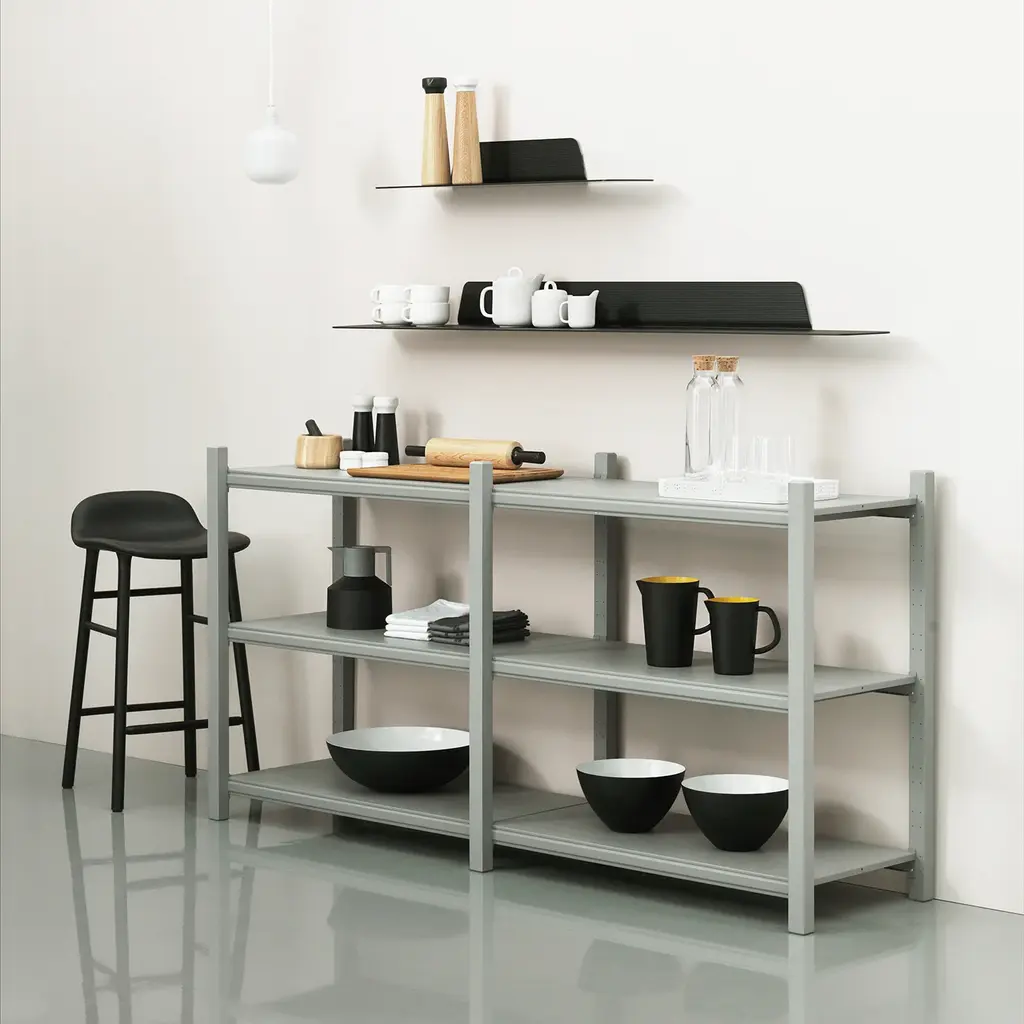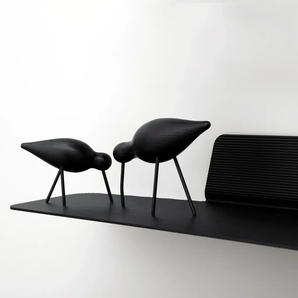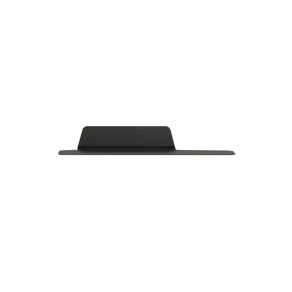 Aerodynamic design inspired the fittingly named Jet, a light aluminum wall shelf with a spacious surface and a unmistakably airborne silhouette. The grooved interior makes an attractive platform for storing workaday miscellany when mounted over a desk or for displaying artworks or treasured items in a living room or hallway. Jet's industrial contours get a luxe treatment in white and black powder-coated aluminum or in metallic silver and champagne with an anodized finish.