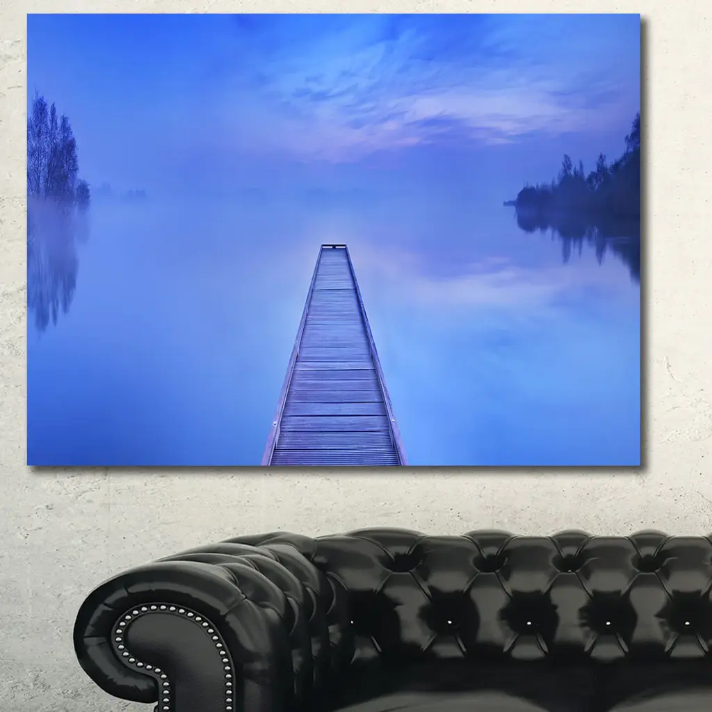 Jetty At Blue Dawn Panorama, Large Bridge Canvas Art Print, 60x40