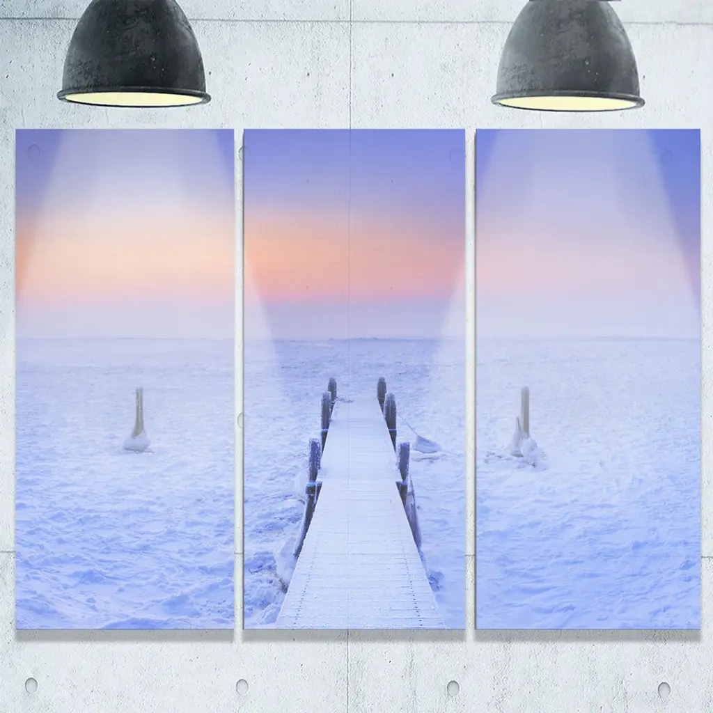 Bring contemporary abstraction to your home with this large 36W x 28H Metal Wall Art. This Jetty in Frozen Lake Netherlands Metal Artwork makes it the focal point of any room or office. - White gloss coating ensures colors are extra vibrant with light reflection.- Aluminum grade sheet metal with 1-inch mounting frame on the back giving the illusion that the artwork is floating on the wall.- Mounting brackets are included along with instructions.- High quality digital images are created directly into a glossy aluminum panel producing a stunning and captivating print into the glossy finish of the metal.- Water, fire and scratch resistant HD aluminum panels.- Looks better than any photo paper and guaranteed to last at least 20 years- Easy to clean with a microfiber cloth. Colors are far superior to regular canvas art. - Easy to hang
