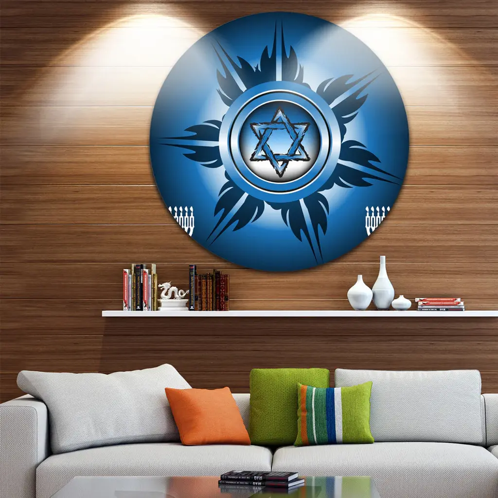 Jewish Symbols, Modern Digital Art Round Metal Wall Art, 23"