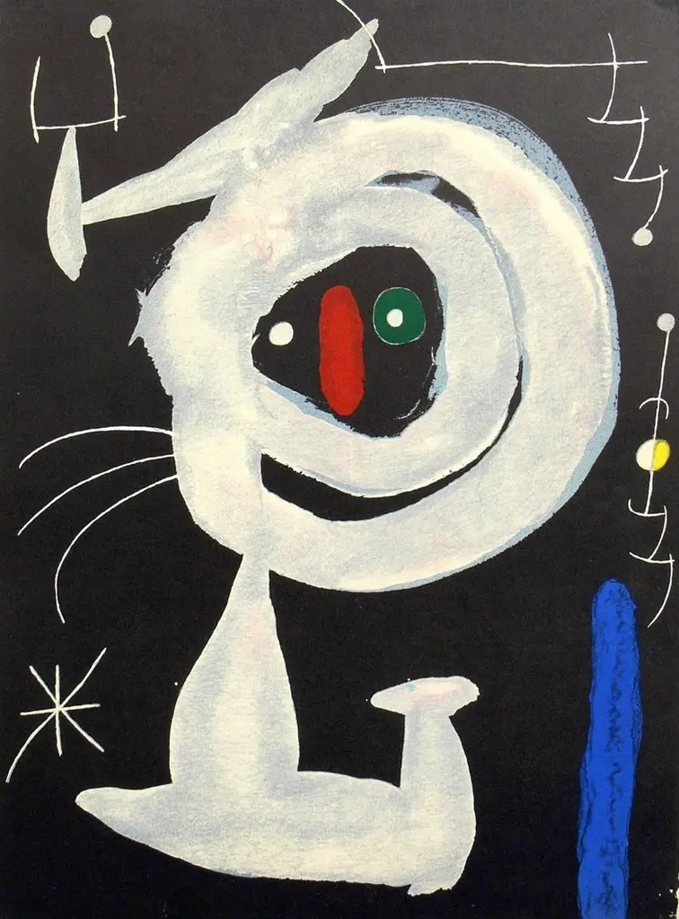 Selection of Joan Miro color lithographs, France, circa 1960s. We purchased a group of these color lithographs from the estate of a couple that lived in France from 1951-1983. These are most likely from the limited edition folio “Derriere le Miroir”, published by the legendary Galerie Maeght. They have been recently framed in clean lined black lacquered wood gallery frames. They are priced at $650 each. The larger lithograph measures 18.5" H x 25.5" W. The smaller lithographs measure 18.5" H x 14.5" W.