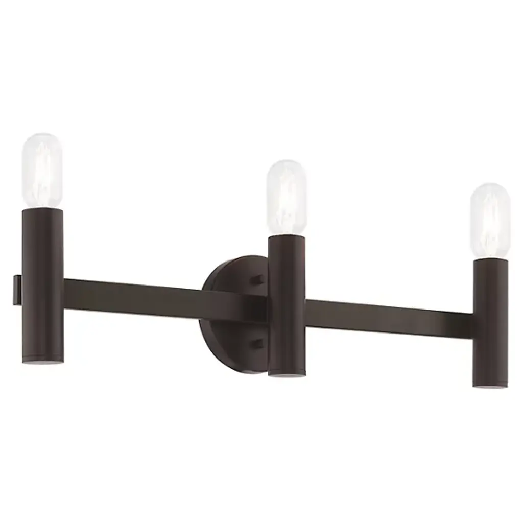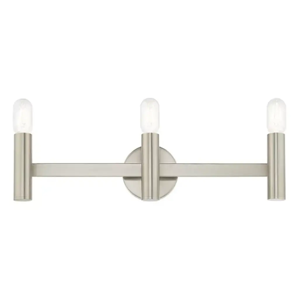 The Joanna Vanity Light from Alder & Ore brightens up the bathroom with a bare bulb design and simply lovely shapes. The bath bar features a signature blend of elements from Scandinavian, mid-century, and transitional designs. Balancing form and function, the circular backplate mounts the piece securely while complementing the overall understated silhouette. The piece lines up against one’s mirror with a tailored look thanks to a linear crossbar. Lamp holders order across charm as they evoke traditional candles with a minimalist modern aesthetic. Exposed bulbs top the piece and produce a distinct shimmering light.