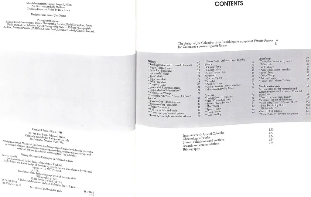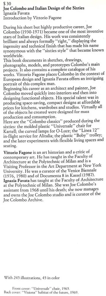 "Joe Colombo And Italian Design Of The Sixties" 1988 Favata, Ignazia [Commentary And Catalogue]
